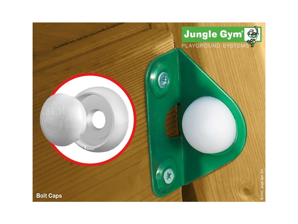 Praktické nacvakávací plastové krytky šroubů pro všechny herní prvky Jungle Gym. Využívají se v případě, že krytky, které byly v balení, jsou poškozené. Chrání děti před úrazem o spojovací materiál a dělají dětskou herní sestavu hezčí.