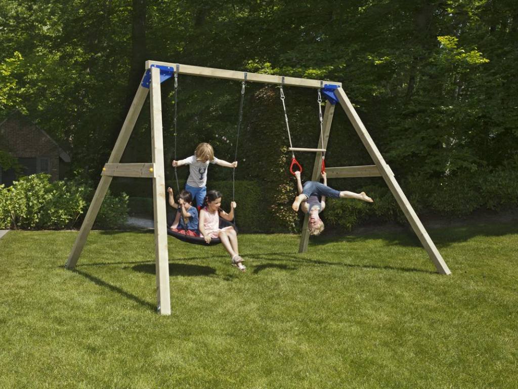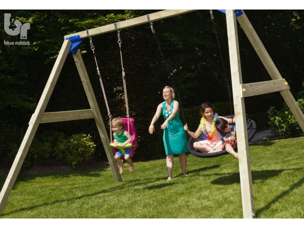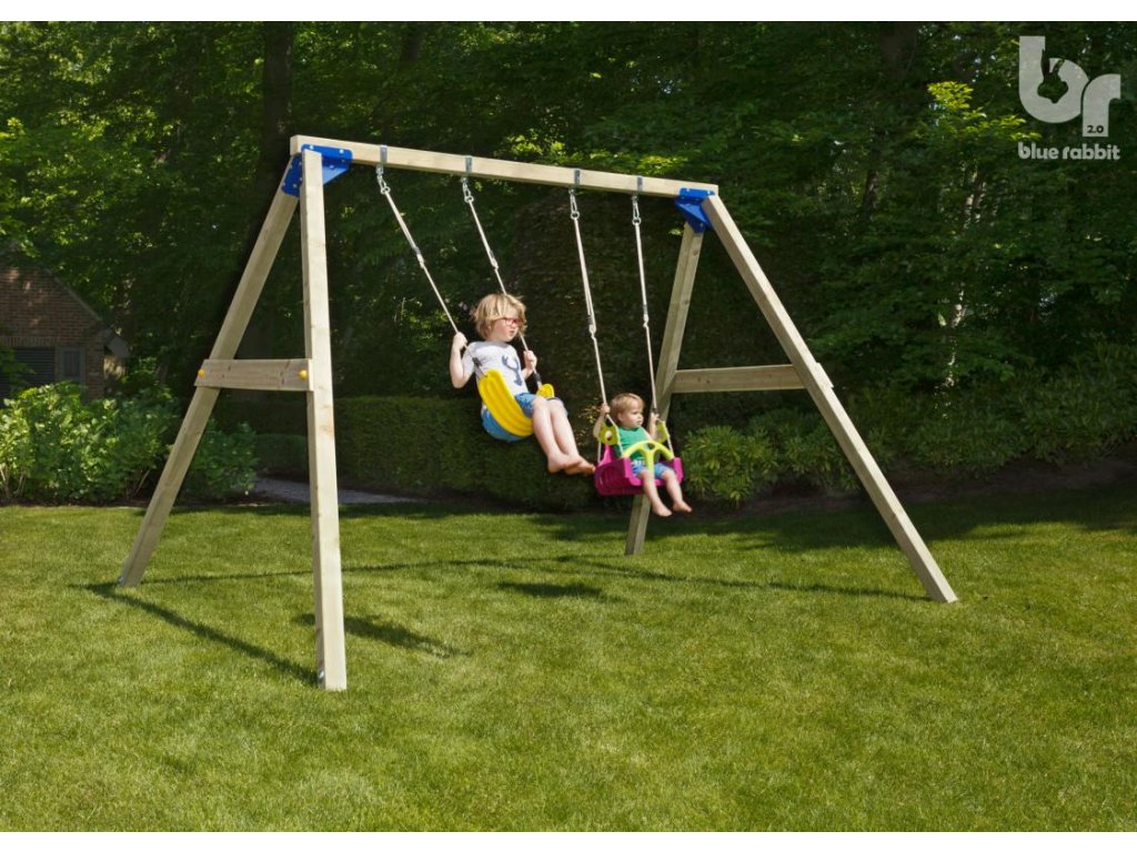 Konstrukce pro set dvou libovolných variant houpaček je vyroben z hoblovaného dřeva, ošetřeného ekologickou impregnací, prodlužující jeho životnost. Pro větší stabilitu a pevnost je set při montáži připevněn k podkladu čtyřmi kovovými, pozinkovanými kotvami, které jsou součástí dodávky.