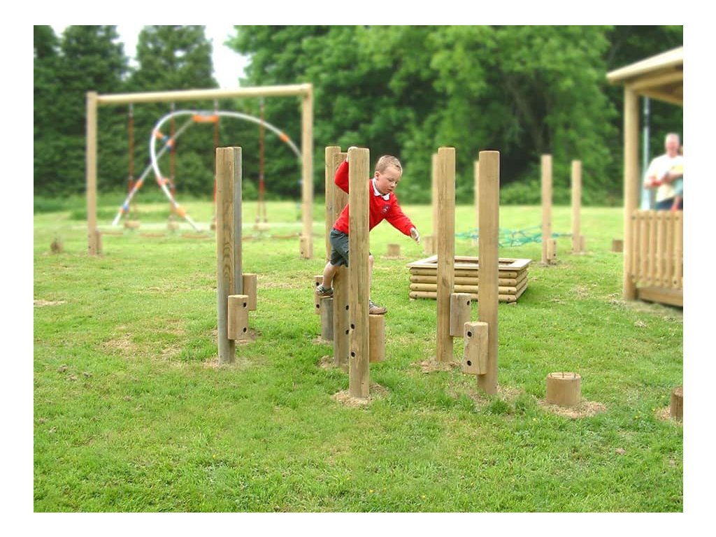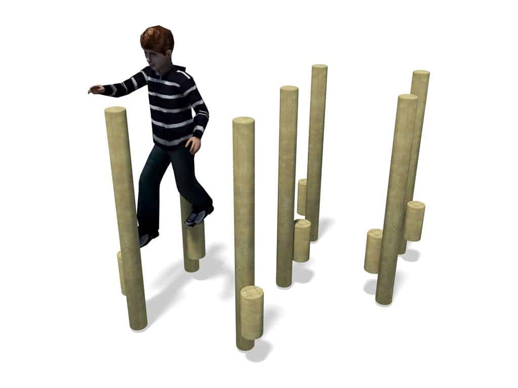 Jak natrénovat chůzi na chůdách? Skvělým doplňkem na dětská hřiště mateřských škol, do parků, k restauracím, hotelům a na různá veřejná prostranství je sestava ze sedmi chůd ze smrkového laminovaného dřeva. Pro prodloužení trvanlivosti je dřevo naimpregnováno. Sestavu lze k podkladu připevnit několika způsoby - zapustit do půdy nebo připevnit pomocí pozinkovaných ocelových kotev, které jsou součástí dodávky. Nejen, že si děti vyzkouší, jak dlouho vydrží na chůdách bez dotyku se zemí, ale slouží i pro rozvoj motorických schopností, zlepšují rovnováhu a koordinaci pohybu. Jsou určeny pro děti od 5 do 14 let. Maximální výška pádu je 0,50 m, proto postačí osadit do travnatého terénu.