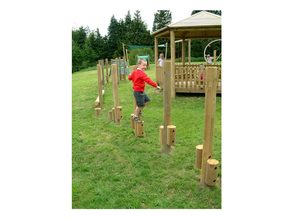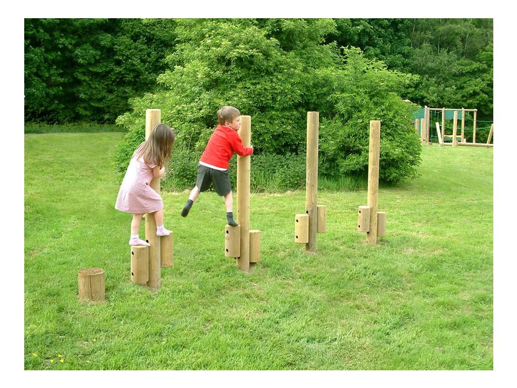 Jak natrénovat chůzi na chůdách? Skvělým doplňkem na dětská hřiště mateřských škol, do parků, k restauracím, hotelům a na různá veřejná prostranství jsou chůdy ze smrkového laminovaného dřeva. Pro prodloužení trvanlivosti je dřevo naimpregnováno. Sestavu lze k podkladu připevnit několika způsoby - zapustit do půdy nebo připevnit pomocí pozinkovaných ocelových kotev, které jsou součástí dodávky. Nejen, že děti zabaví, ale slouží i pro rozvoj motorických schopností, zlepšují rovnováhu a koordinaci pohybu. Jsou určeny pro děti od 5 do 14 let. Maximální výška pádu je 0,50 m, proto postačí osadit do travnatého terénu.