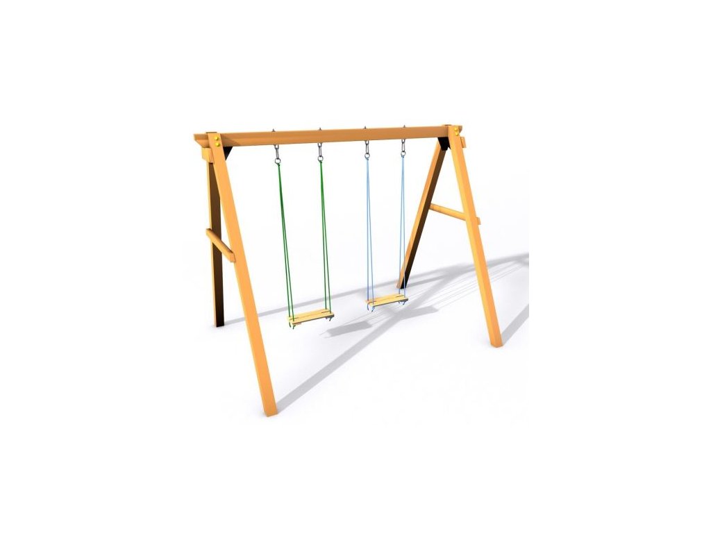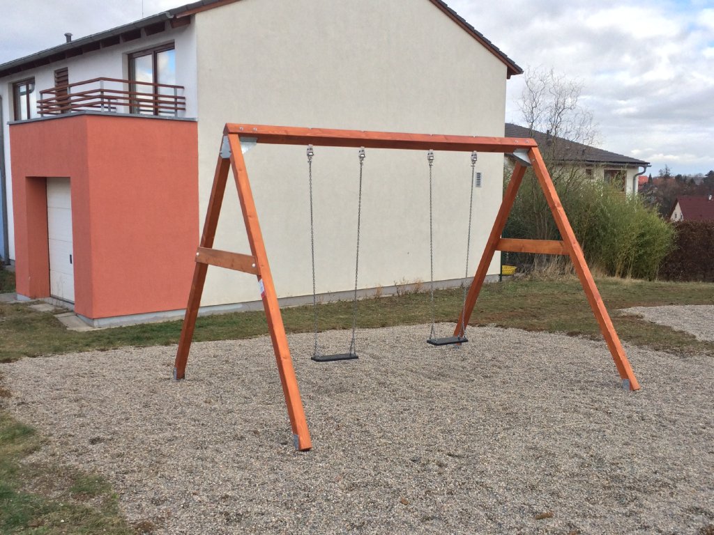 Sestava pro dvě houpačky je vyrobena z hranolů 9x9 cm a kovového ráhna pro zpevnění. Dřevo použité při výrobě je z klasických českých jehličnanů. Je hoblované, na míru nakrácené a ošetřené hloubkovou, ekologickou impregnací. Ta chrání dřevo před povětrnostními vlivy a prodlužuje tak jeho životnost. Pro větší a lepší stabilitu se k terénu připevňuje pomocí ocelových, pozinkovaných kotev, které jsou součástí dodávky.