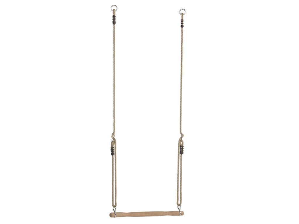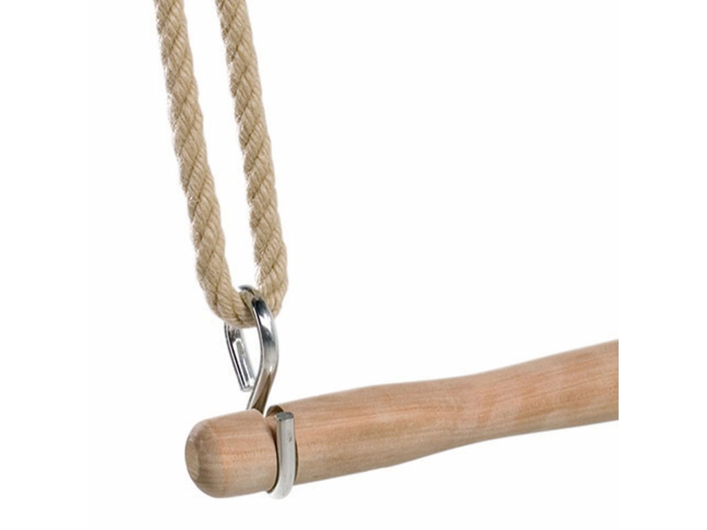 „Ergonomicky“ tvarovaná dřevěná hrazda KBT umožňuje díky svému tvaru optimální uchopení. Je vyrobena z tvrdého, ekologicky ošetřeného dřeva. Kroužky a osmičky jsou vyrobeny z pozinkované oceli. Svary na lanech jsou vyrobeny z černého PP.