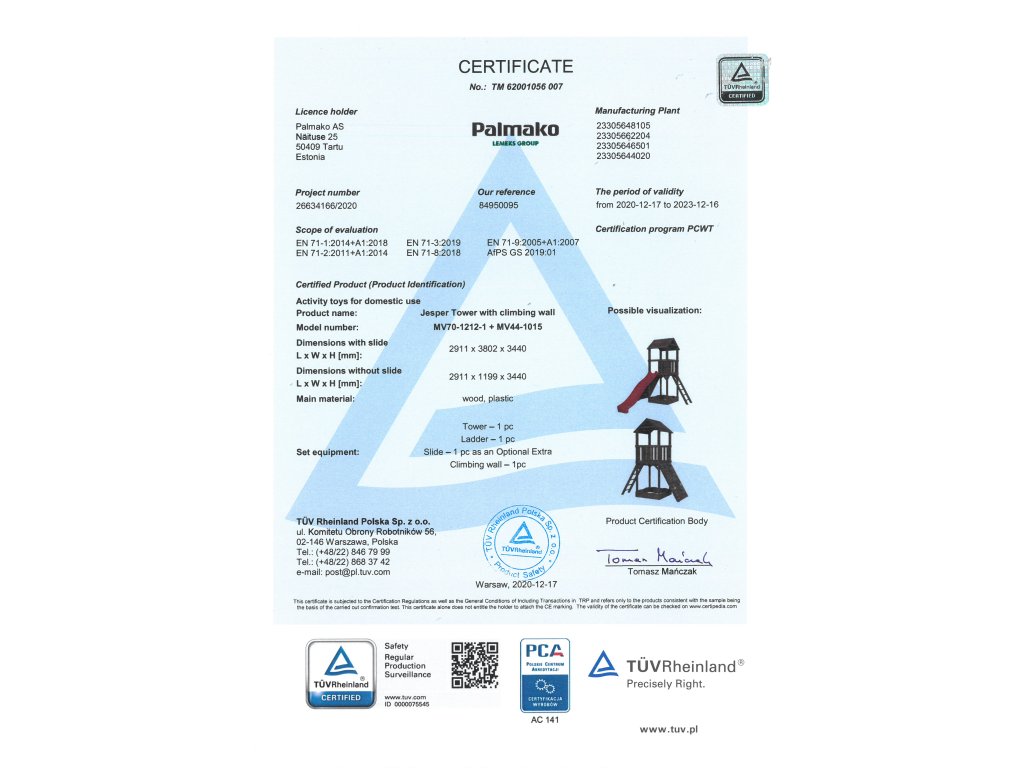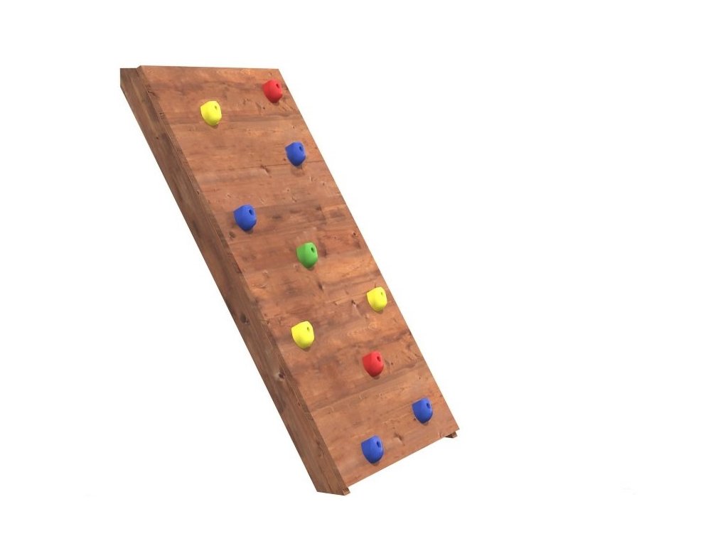 Jesper Climbing Wall je šikmá stěna pro lezení, kterou lze použít v kombinaci s dalšími moduly a je vhodná pro menší zahradu. Vyrobena je z hoblovaného dřeva ošetřeného tlakovou impregnací chránící ho před povětrnostními vlivy a proti dřevokazným houbám, plísním, hnilobě a hmyzu a prodlužující tak jeho životnost. To platí pro veškeré konstrukční hranoly. Používáme výrobcem doporučovaný maximálně možný profil hlavních stojek 9 x 9cm.