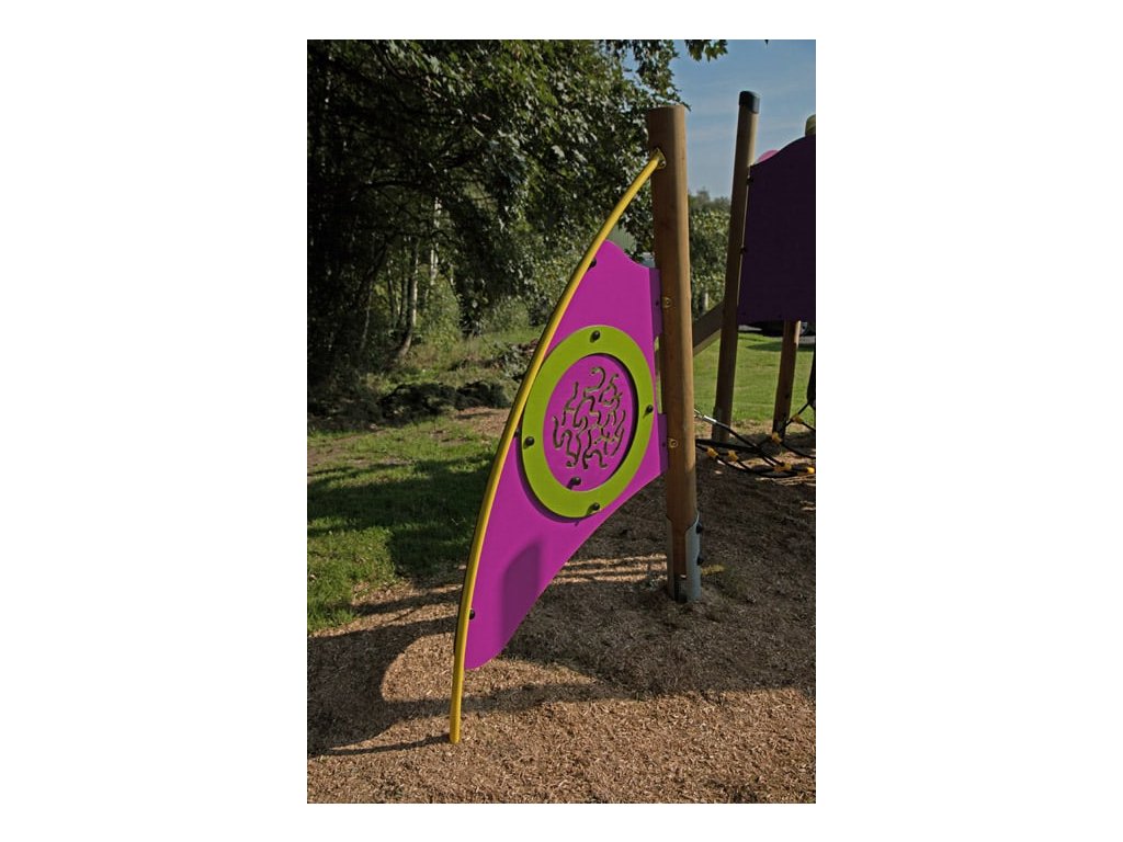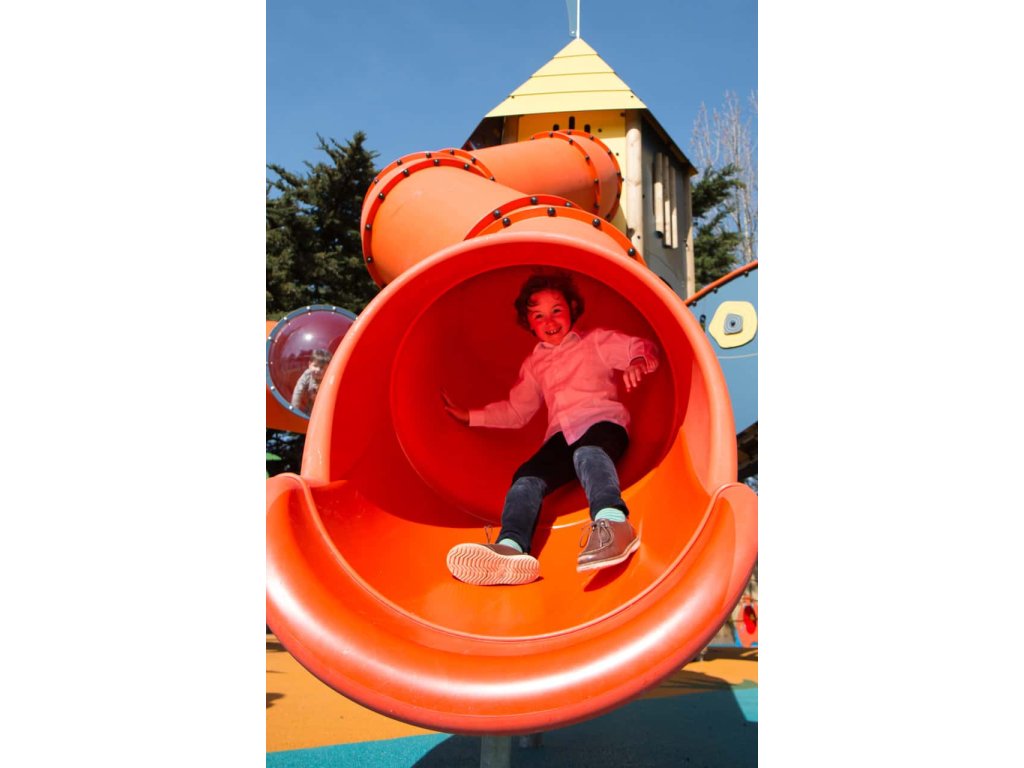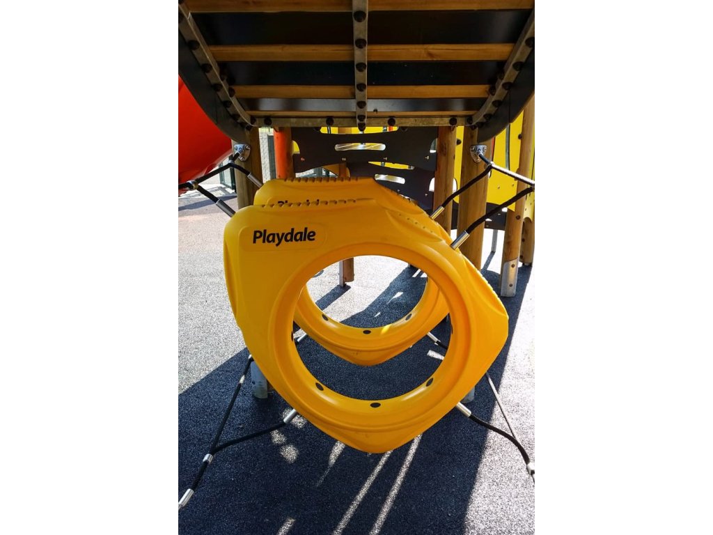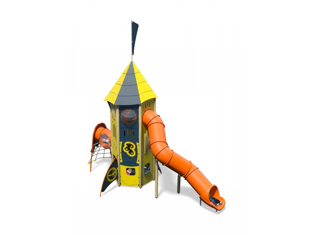 Na podestu věže se dítě dostane tunelem, dolů se sklouzne v tubusové laminátové nebo ocelové skluzavce dlouhé 330 cm. Hřiště obsahuje ještě další zajímavé prvky - lanovou rampu, hrací a obloukové panely...