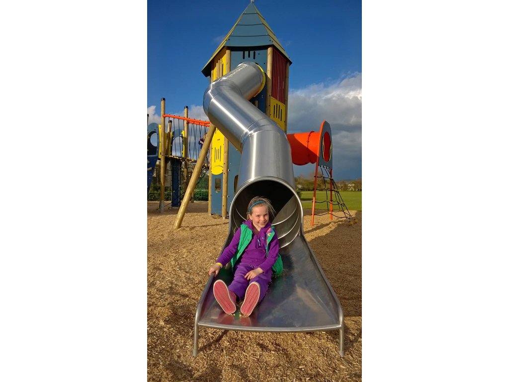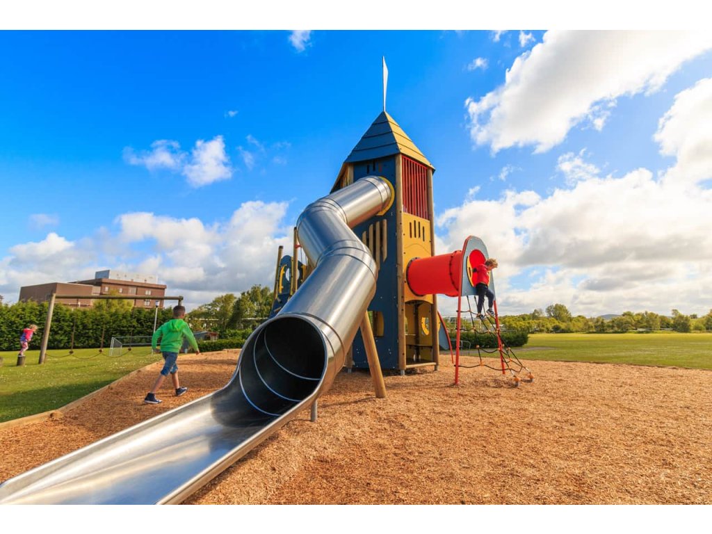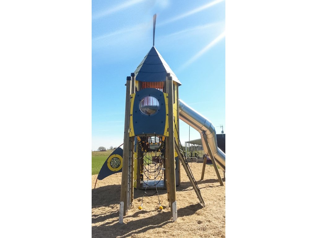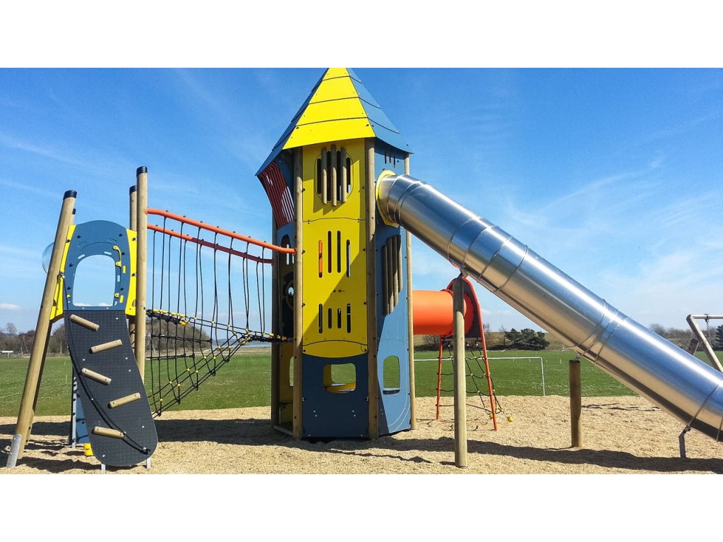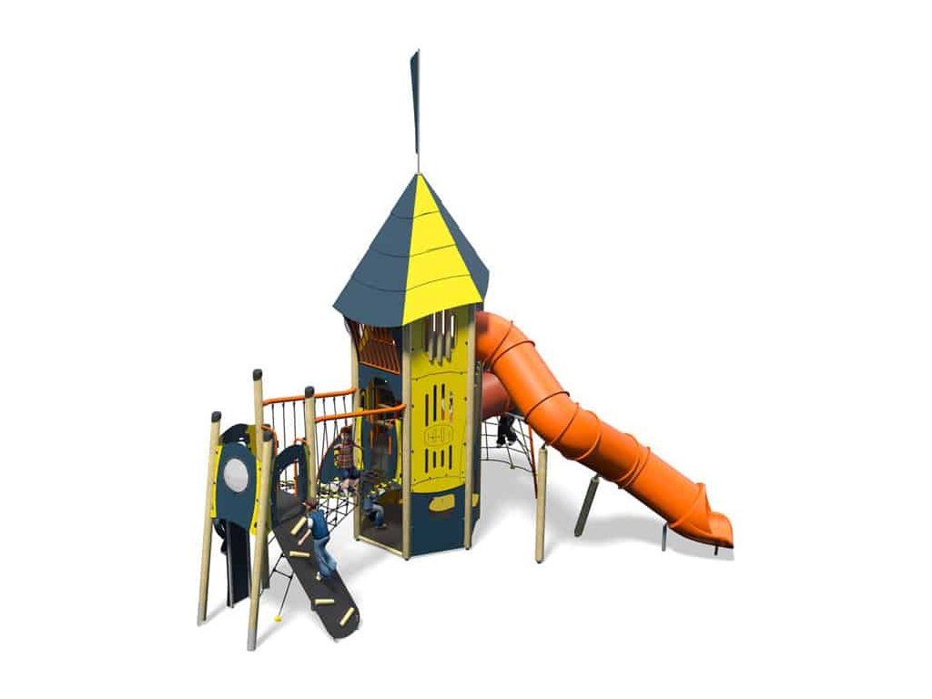 Na podestu věže se dítě dostane tunelem, po lanové rampě nebo po lezecké stěně, dolů se sklouzne v tubusové laminátové nebo ocelové skluzavce dlouhé 330 cm. Hřiště obsahuje ještě další zajímavé prvky - šikmou lanovou rampu, hrací panely nebo panel s bublinou...