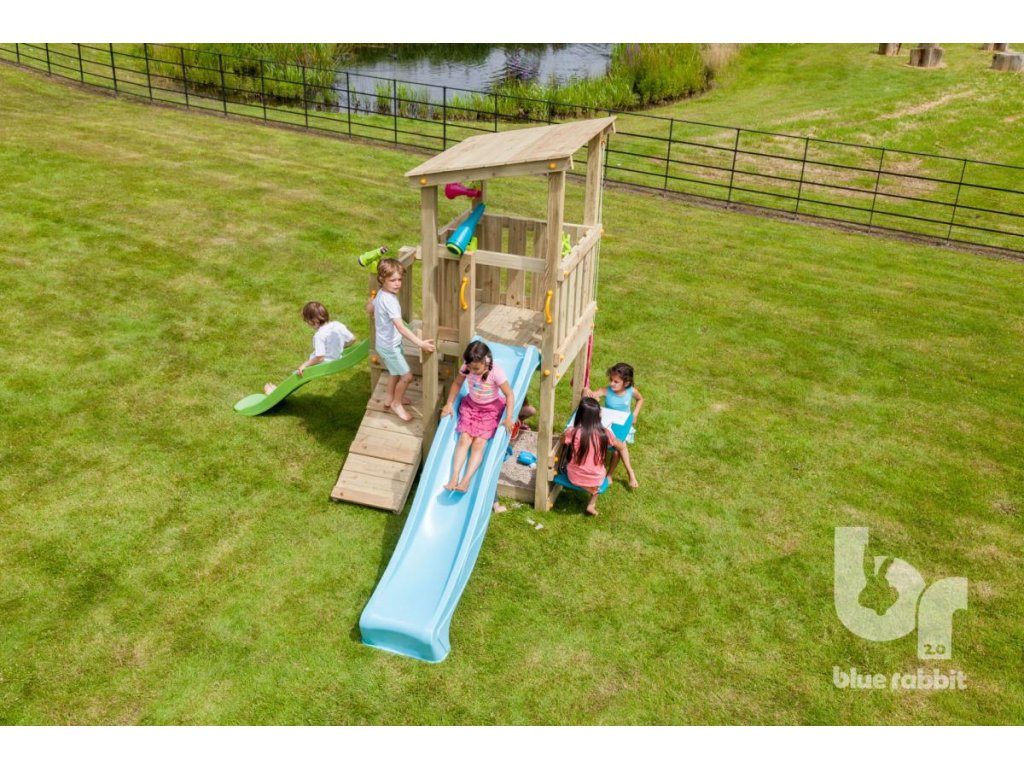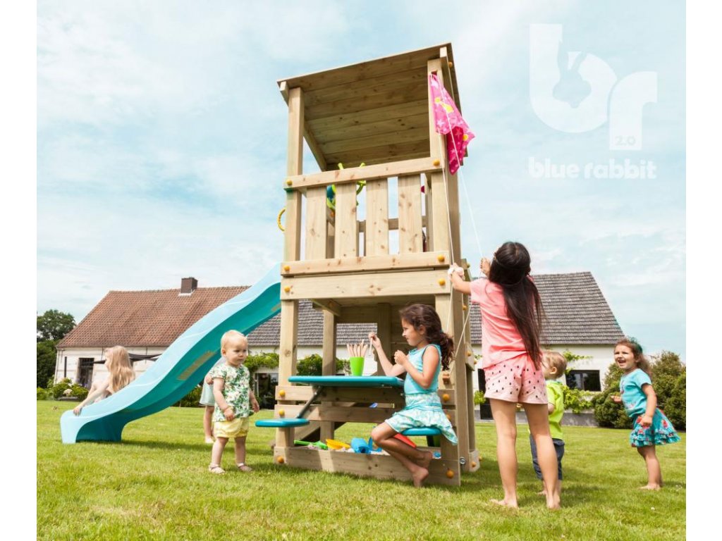 Dětská hrací věž Blue Rabbit CASCADE 120 je vyrobena z hoblovaného dřeva, ošetřeného ekologickou impregnací chránící ho před povětrnostními vlivy a prodlužující tak její životnost. To platí pro veškeré konstrukční hranoly i prkna stříšky a podest. Používáme výrobcem doporučený maximálně možný profil hlavních stojek 7 x 7 cm.
