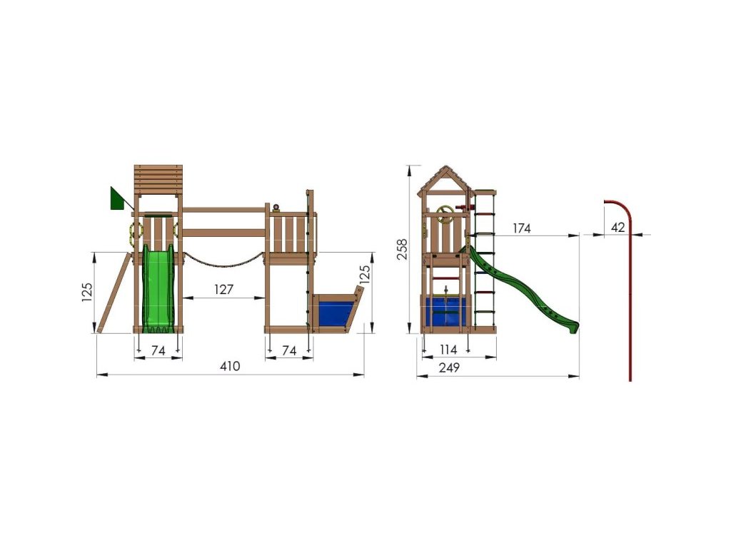 - věže i domečky lze rozšířit o plastové skluzavky nebo houpačky