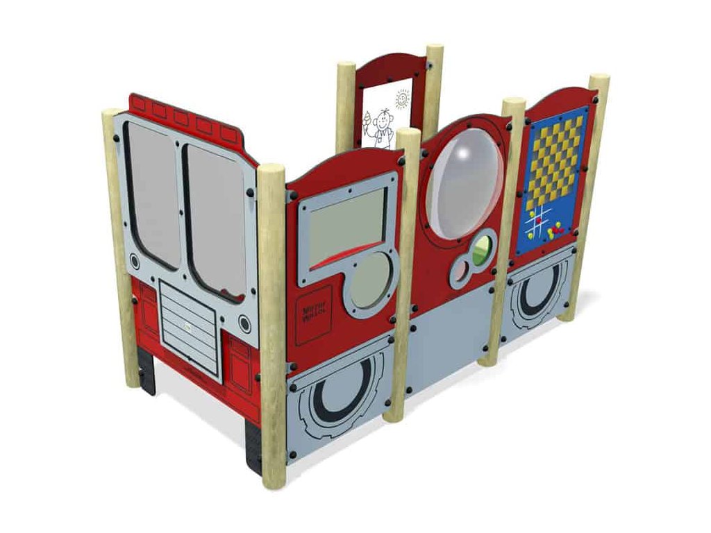 Skvělým doplňkem na dětská hřiště mateřských škol, do parků a na různá veřejná prostranství je spojení několika paneůl v podobě hasičského auta od firmy Playdale. Děti si mohou na čerstvém vzduchu a v přírodě za hezkého počasí zahrát na to jak řidit hasičské auto.