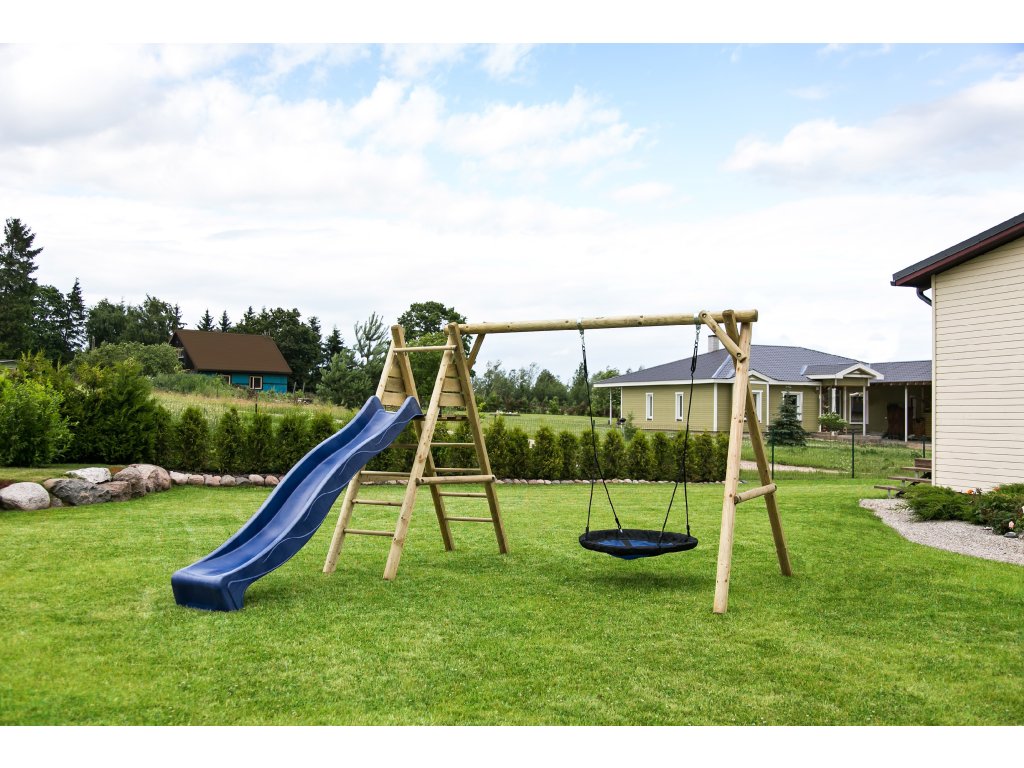Velmi oblíbená pro malé i větší děti je houpačkové hnízdo ke které lze připojit skluzavku.