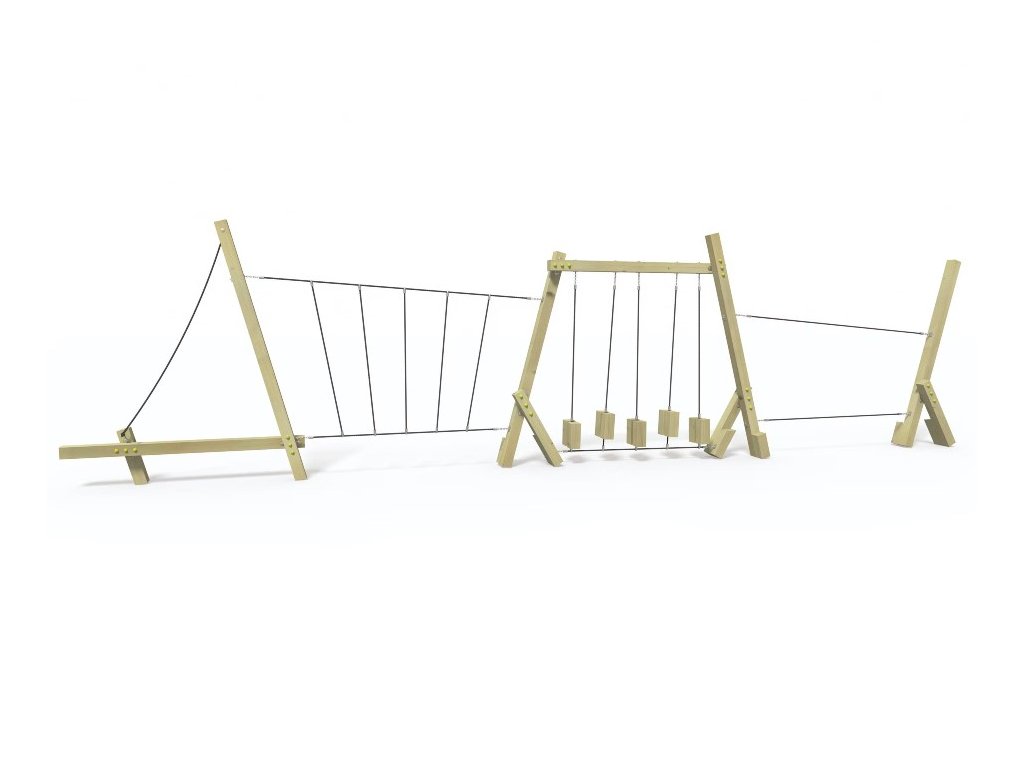 Sestava WHITE RHINO - JUNGLE COMBO 1 je kombinace prvků Liana, Rio, Jungle a Sail spojených v jeden dlouhý celek. Tyto prvky lze libovolně kombinovat a sestavovat. Kvalitní vyztužené lanové komponenty poskytují mladým průzkumníkům odolné, bezpečné a dobře vypadající lezecké výzvy. Chytrý systém usnadňuje napnutí všech lan po instalaci konstrukce. Hranoly pro sestavu jsou vyrobeny z hoblovaného dřeva, ošetřeného ekologickou impregnací chránící ho před povětrnostními vlivy a prodlužující tak jeho životnost. Používáme výrobcem doporučovaný profil hlavních stojek 9 x 9 cm.