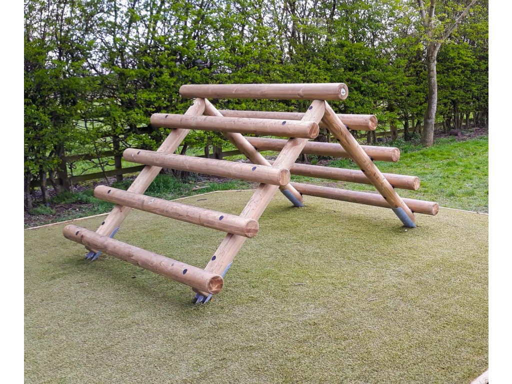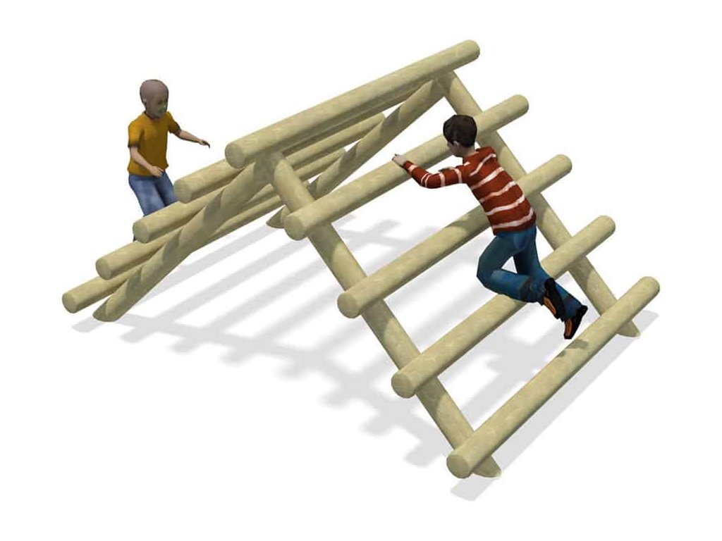 Sestava ze čtyř šikmých a devíti vodorovných dřevěných kůlů ze středové smrkové kulatiny je pro děti zajímavou aktivitu. Lezení nahoru a dolů po dřevěném rámu je pro děti skvělý způsob, jak rozvíjet svou sílu, koordinaci a lezecké dovednosti. Z důvodu prodloužení trvanlivosti je dřevo tlakově impregnováno. Sestavu lze k podkladu připevnit několika způsoby - zapustit do půdy nebo připevnit pomocí pozinkovaných ocelových kotev, které jsou součástí dodávky.