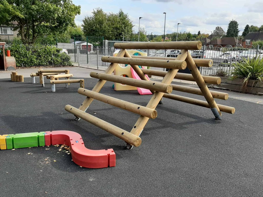 Skvělým doplněkem na školní hřiště, do parků a na různá veřejná prostranství s dostatkem místa je sestava Log Frame od firmy Playdale. Jejím hlavním úkolem je trénink rovnováhy a koordinace pohybu, rozvoj motorických a balančních schopností, ale také posilování. Menší děti pod dohledem a s pomocí rodičů a velké děti si sami mohou vyzkoušet svoji pohybovou šikovnost.