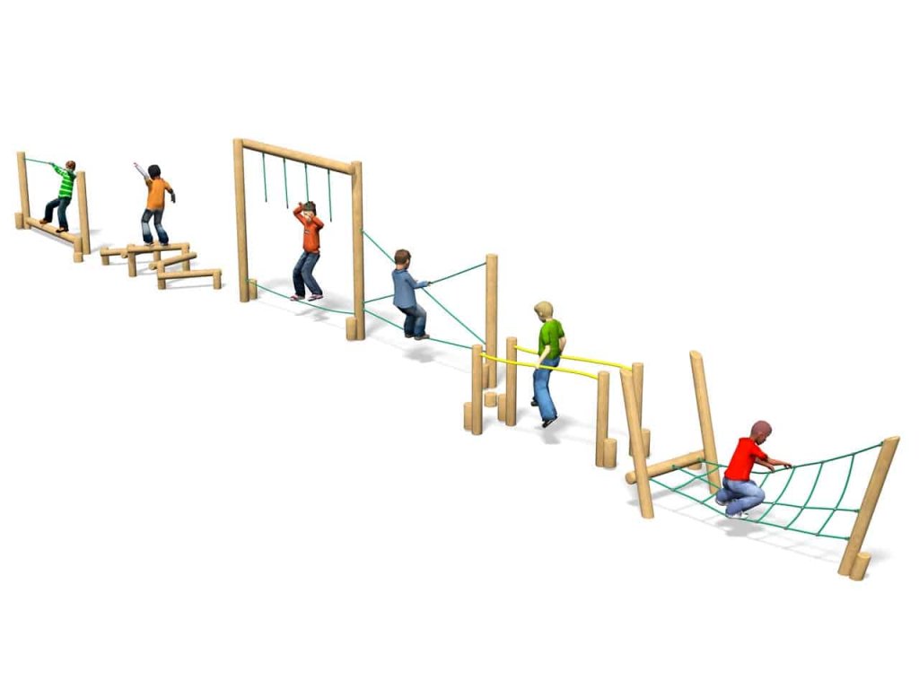 Skvělým doplněkem na školní hřiště, do parků, k restauracím, hotelům, penziónům a na různá veřejná prostranství s dostatkem místa je kombinace několika herních prvků od firmy Playdale. Jejím hlavním úkolem je trénink rovnováhy a koordinace pohybu, rozvoj motorických a balančních schopností, ale také posilování. Malé děti s pomocí rodičů a velké děti si sami mohou vyzkoušet svoji pohybovou šikovnost.
