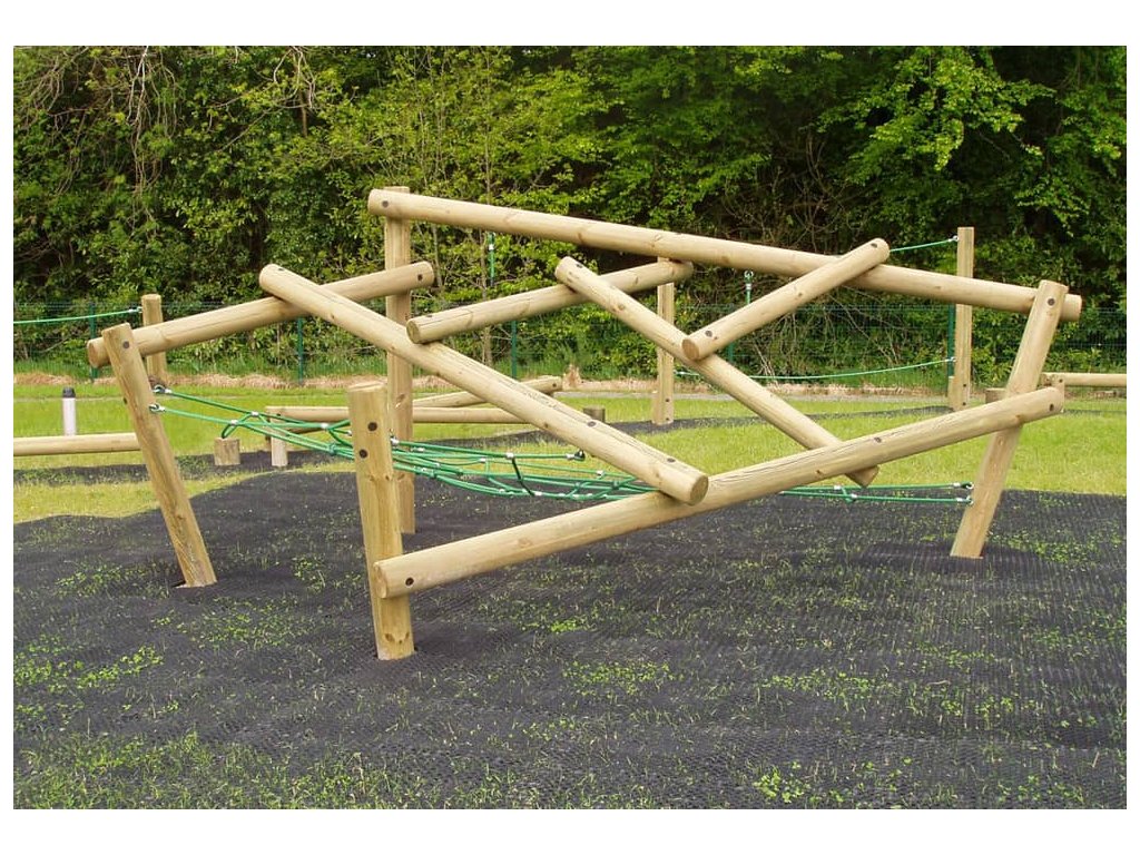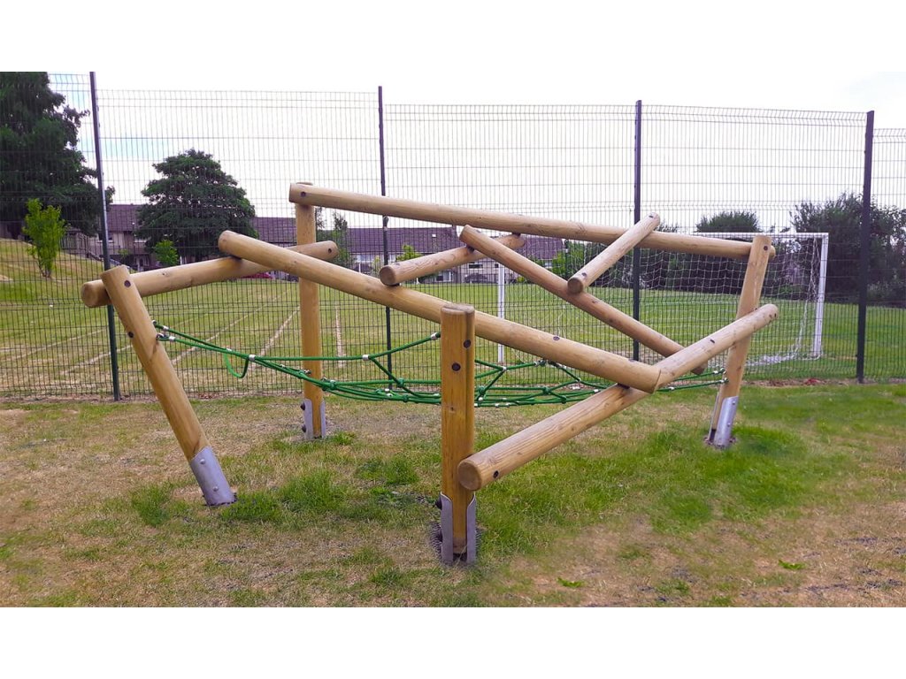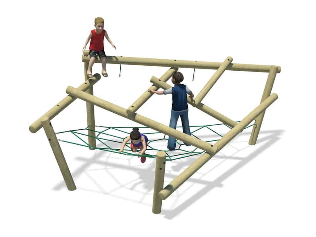 Sestava z dřevěných kůlů ze středové smrkové kulatiny a různých lanových sítí vytvoří pro děti zajímavou aktivitu. Mezi lany se mohou různě proplétat a přelézat a tak soutěžit kdo vydrží déle na překážkách a nedotkne se země nebo kdo určenou dráhu překoná v nejrychlejším čase. Z důvodu prodloužení trvanlivosti je dřevo tlakově impregnováno. Sestavu lze k podkladu připevnit několika způsoby - zapustit do půdy nebo připevnit pomocí pozinkovaných ocelových kotev, které jsou součástí dodávky.
