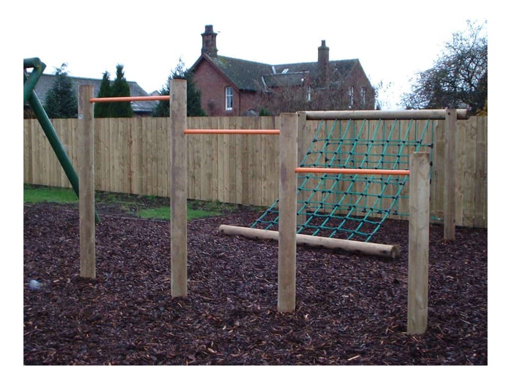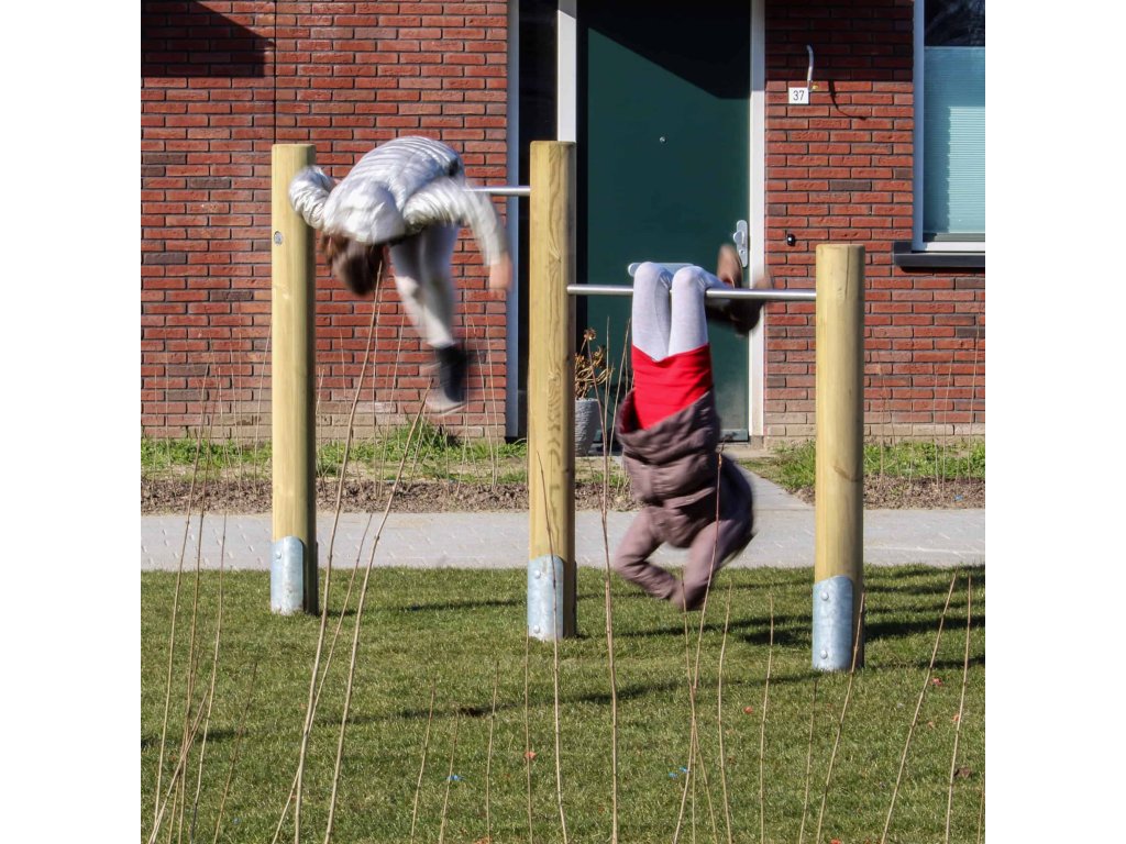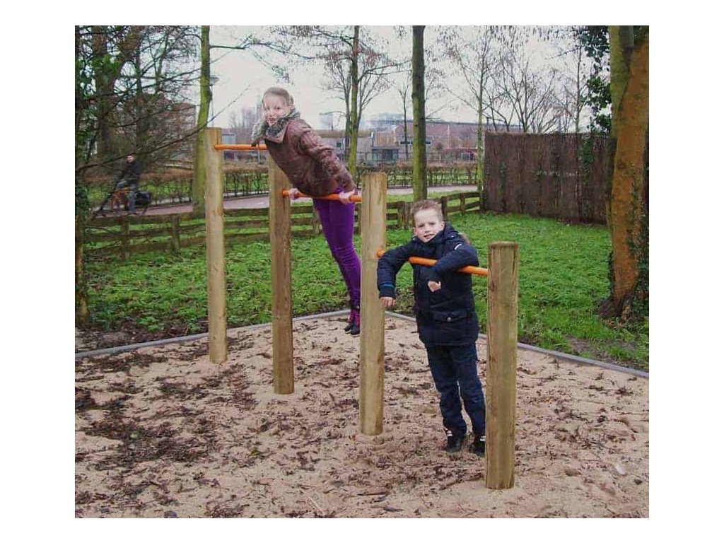 Sestava z dřevěných kůlů ze středové smrkové kulatiny a ocelových tyčí nastavených v různých výškách ve čtyřech různých konfiguracích vytvoří pro děti zajímavou aktivitu. Na hrazdách se děti mohou houpat ať už zavěšeny za ruce nebo nohy, mohou zkoušet ručkovat, různě se točit a soutěžit mezi sebou kdo vydrží déle na překážce a nedotkne se země nebo kdo určenou dráhu překoná v nejrychlejším čase. Z důvodu prodloužení trvanlivosti je dřevo tlakově impregnováno. Sestavu lze k podkladu připevnit několika způsoby - zapustit do půdy nebo připevnit pomocí pozinkovaných ocelových kotev, které jsou součástí dodávky.