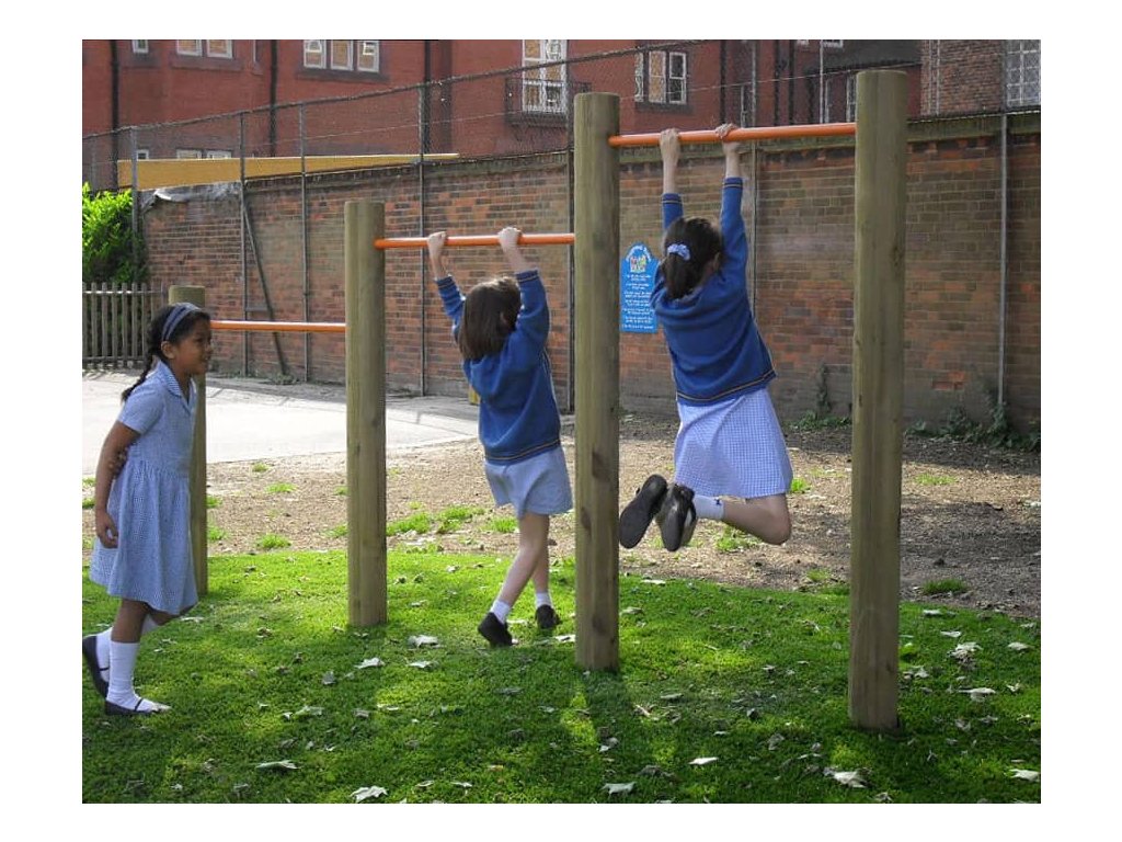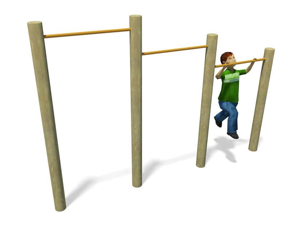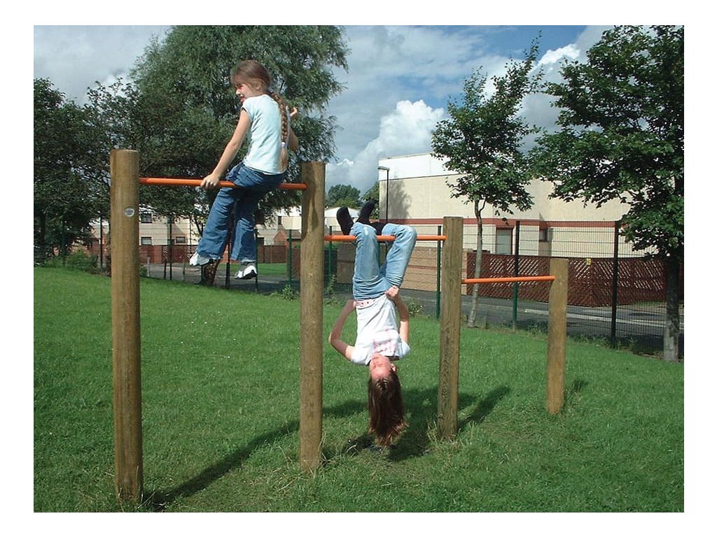 Skvělým doplněkem na školní hřiště, do parků, k restauracím, hotelům, penziónům a na různá veřejná prostranství s dostatkem místa je sestava Swing Bars od firmy Playdale. Jejím hlavním úkolem je cvičení a posilování horních ale i dolních končetin. Menší děti pod dohledem a s pomocí rodičů a velké děti si sami mohou vyzkoušet svoji pohybovou šikovnost.