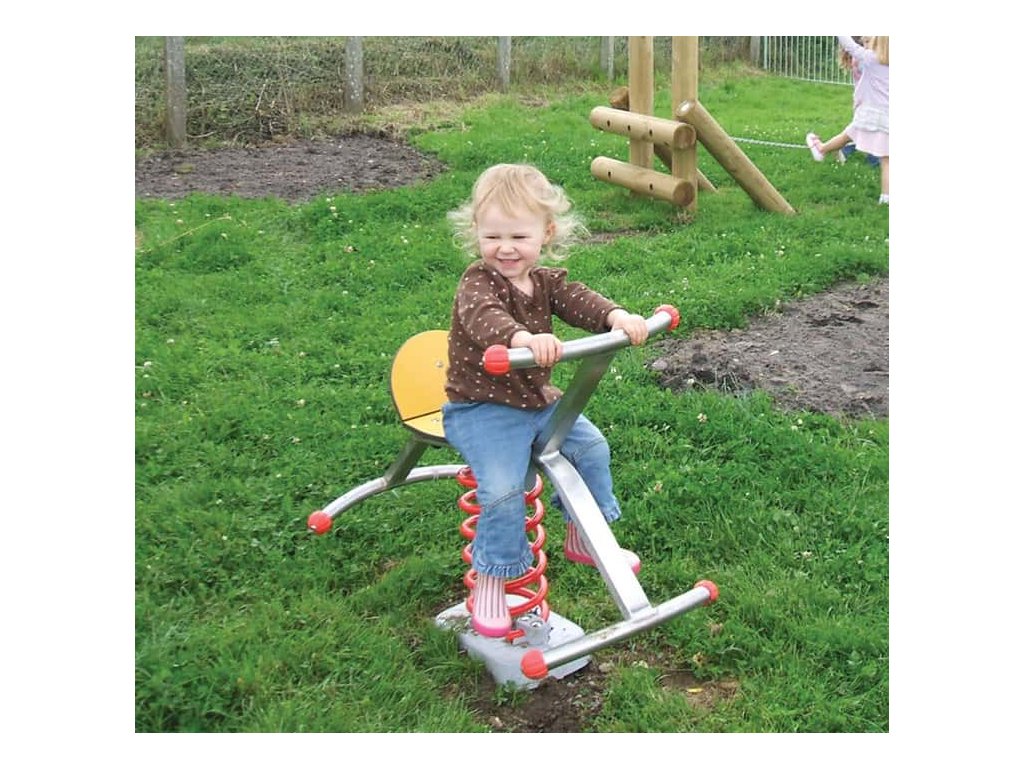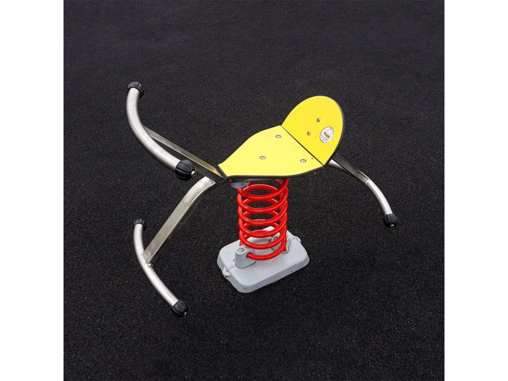 Pružinové houpadlo je vyrobeno z nerezové oceli a odolného plastu. Je upevněno na silné pružině, která je pomocí masivní pozinkované kotvy zabetonována do terénu. Maximální výška pádu je 0,55 m a proto není třeba pod houpačku speciální podklad. Postačí trávník, jemný písek nebo mulčovací kůra.