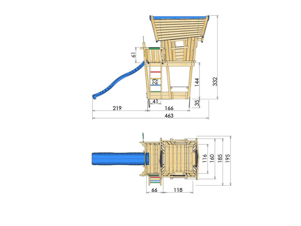 - věže i domečky lze rozšířit o plastové skluzavky nebo houpačky
