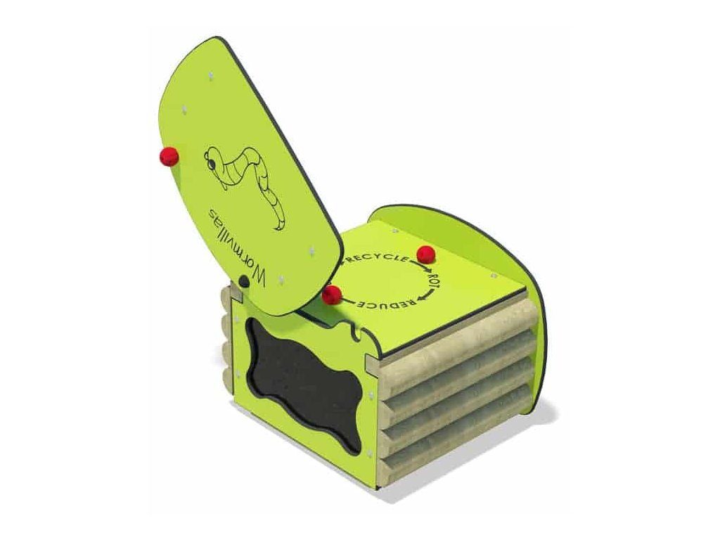 Pro děti které se nebojí hmyzu v podobě různých brouků a žížal je připraven hmyzí domeček od firmy Playdale. Je vyroben v kombinaci dřeva a kompaktního barevného laminátu. Dva boky domečku jsou z opracovaného dřeva a dva boky včetně víka z laminátu. Laminátové boky se dají snadno odkrývat a děti mohou pozorovat pohyb hmyzu v půdě.