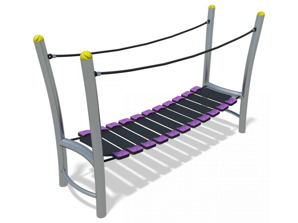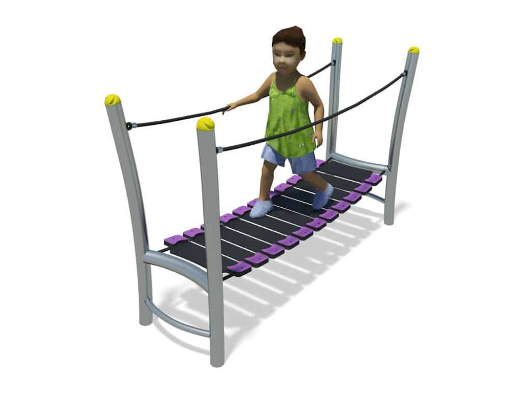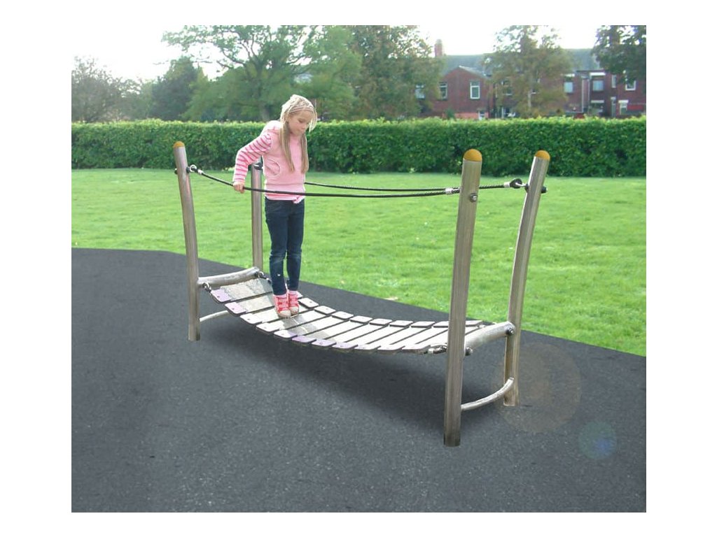 Jak trénovat rovnováhu a koordinaci pohybu? Jedinečným doplňkem dětských hřišť, do parků, k restauracím, penziónům a na různá veřejná prostranství je kývající se most od firmy Playdale. Nosná konstrukce houpací lávky je vyrobena ze sloupků z pozinkované oceli, v horní části zakončena barevnou krytkou. Samotná lávka je vyrobena z odolného plastu a po stranách má lanové zábradlí. Sestavu lze k podkladu připevnit pouze pomocí pozinkovaných ocelových kotev, které jsou součástí dodávky.
