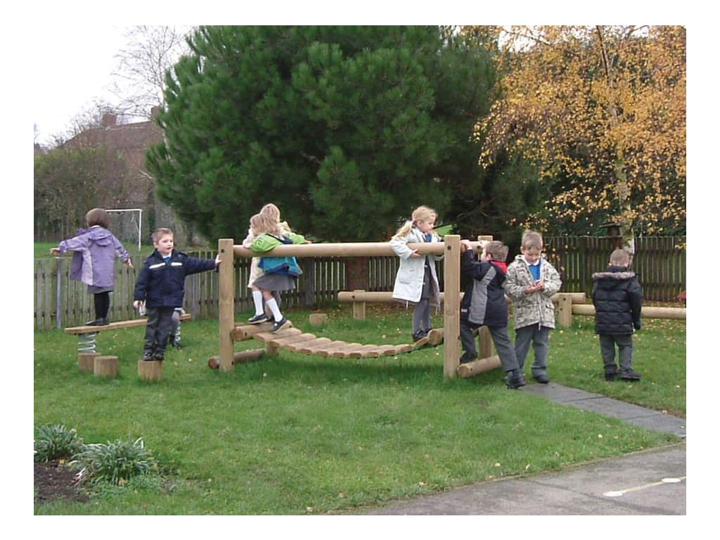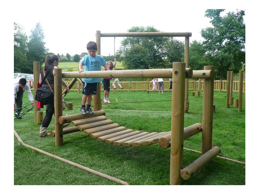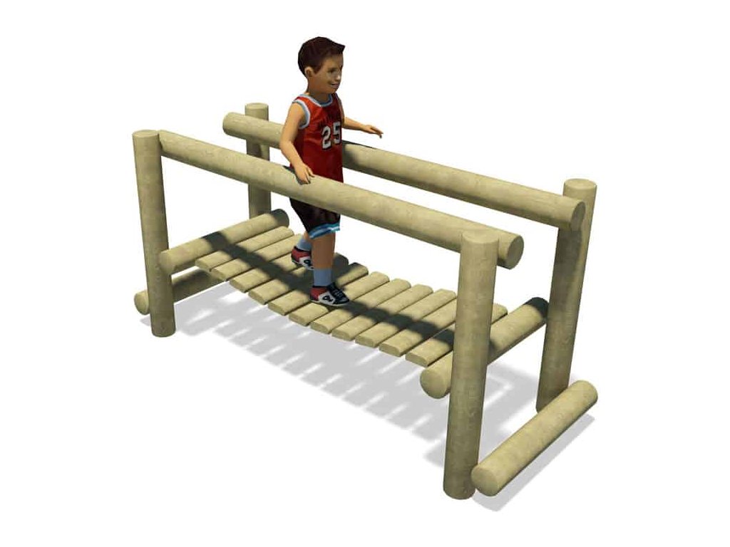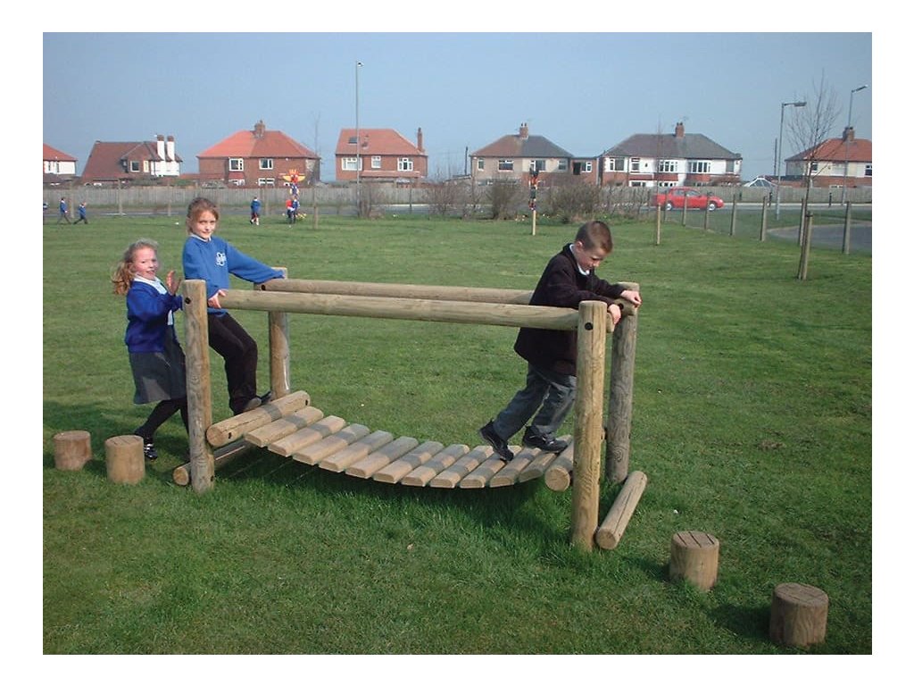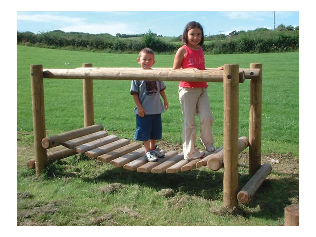 Jak trénovat rovnováhu a koordinaci pohybu? Skvělým doplňkem dětských hřišť do parků, k restauracím, hotelům a na různá veřejná prostranství je kývající se most od firmy Playdale. Nosná konstrukce houpací lávky je vyrobena ze smrkové středové kulatiny a samotná lávka je vyrobena z opracované kulatiny. Z důvodu prodloužení trvanlivosti je dřevo impregnováno. Sestavu lze k podkladu připevnit několika způsoby - zapustit do půdy nebo připevnit pomocí pozinkovaných ocelových kotev, které jsou součástí dodávky.