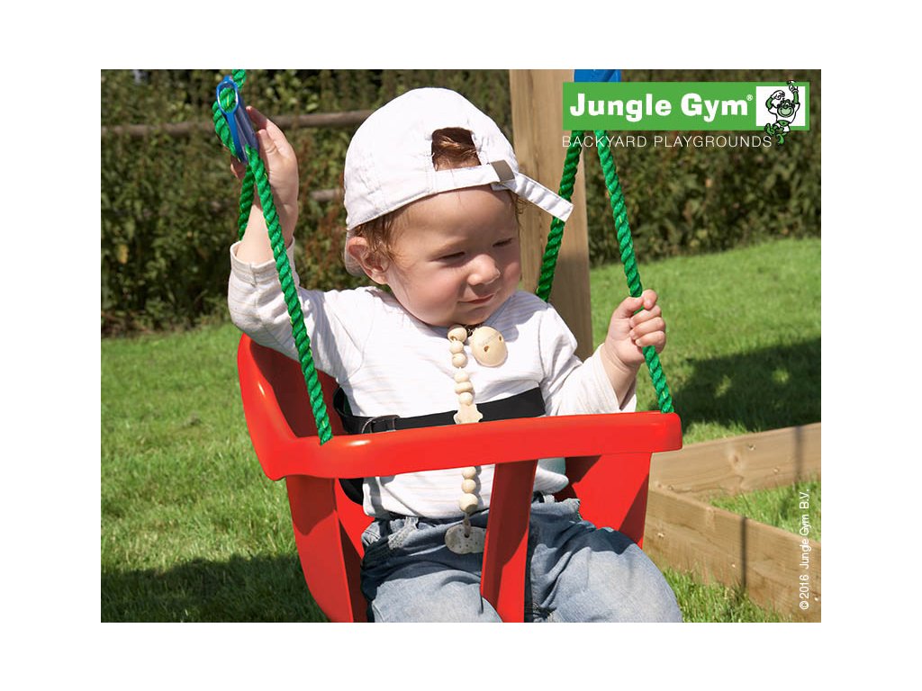 Plastové bezpečnostní sedátko je určeno pro ty nejmenší děti do dvou let věku. Dodáváme jej pouze v červené variantě. Délku lan je možné nastavit pomocí lanových zámků. Bezpečnostní sedátko je vhodné pro houpačky Jungle Swing 250 cm a Jungle Peak, ale i houpačkové moduly 1-Swing Frame 2.0a 2-Swing Frame 2.0 a Climb Frame 2.0.