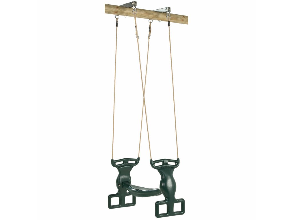 Unikátní houpačkový hák KBT duo seat je navržen speciálně pro houpací příslušenství se čtyřmi závěsnými lany. Čtyři závěsné body zajišťují optimální stabilitu během kývání u našich sedadel KBT duo a houpačekových hnízd. Houpačkový hák se dvěma sedadly se hodí na kulaté (Ø 90 až 120 mm) i čtvercové (90 x 90 mm) dřevo. Vzdálenost mezi háčky karabin je 300 mm. Závitová tyč je M12 s bezpečnostní maticí a hladkou podložkou.
