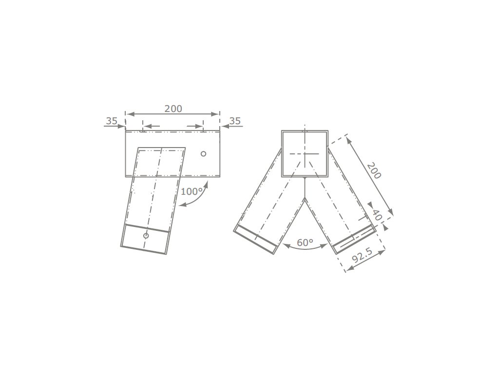 Houpačkový roh KBT „šikmý" čtverec poskytuje řešení pro stavbu houpačkových konstrukcí z hranolu o velikosti 90 x 90 mm. Je vyroben z práškově lakovaného plechu o síle 2 mm nebo 2,5 mm. Délka trubek je 200 mm nebo 250 mm . Vrtané otvory pro fixaci jsou Ø 10 mm. Úhel mezi dolů směřujícími nohami je 60 °. Dodáváme v zelené barvě.