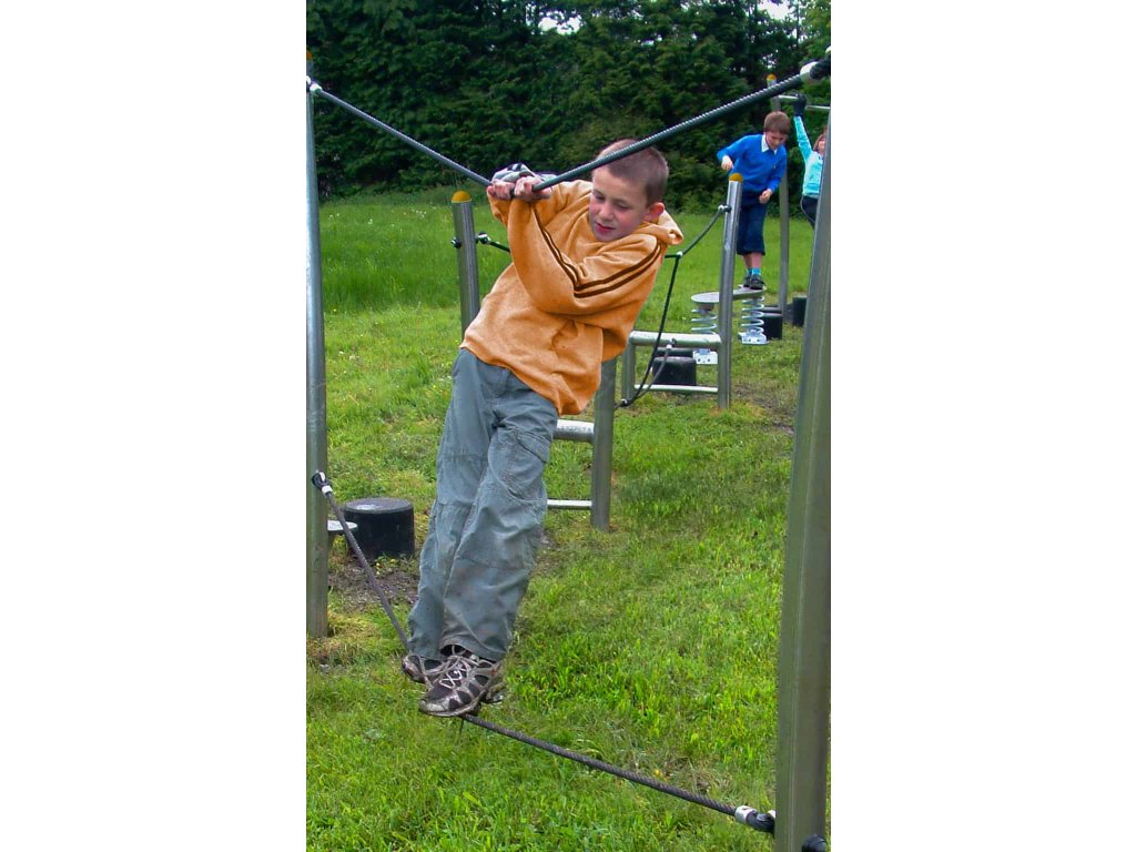 Jak trénovat rovnováhu a koordinaci pohybu? Spojením dvou aktivit v jednu. Skvělým doplňkem dětských hřišť do parků, k restauracím, hotelům, penziónům a na různá veřejná prostranství je houpavá lanová aktivita od firmy Playdale. Sestavu tvoří rám z nerezové oceli a tří svislých lan zakončena nášlapnou plochou spolu s přechodem po laně je pro děti zajímavou aktivitu. Děti se mohou mezi lany různě proplétat a soutěžit kdo se nejrychleji dostane z bodu A do bodu B a nedotkne se země. Sestavu lze k podkladu připevnit pouze pomocí pozinkovaných ocelových kotev, které jsou součástí dodávky.