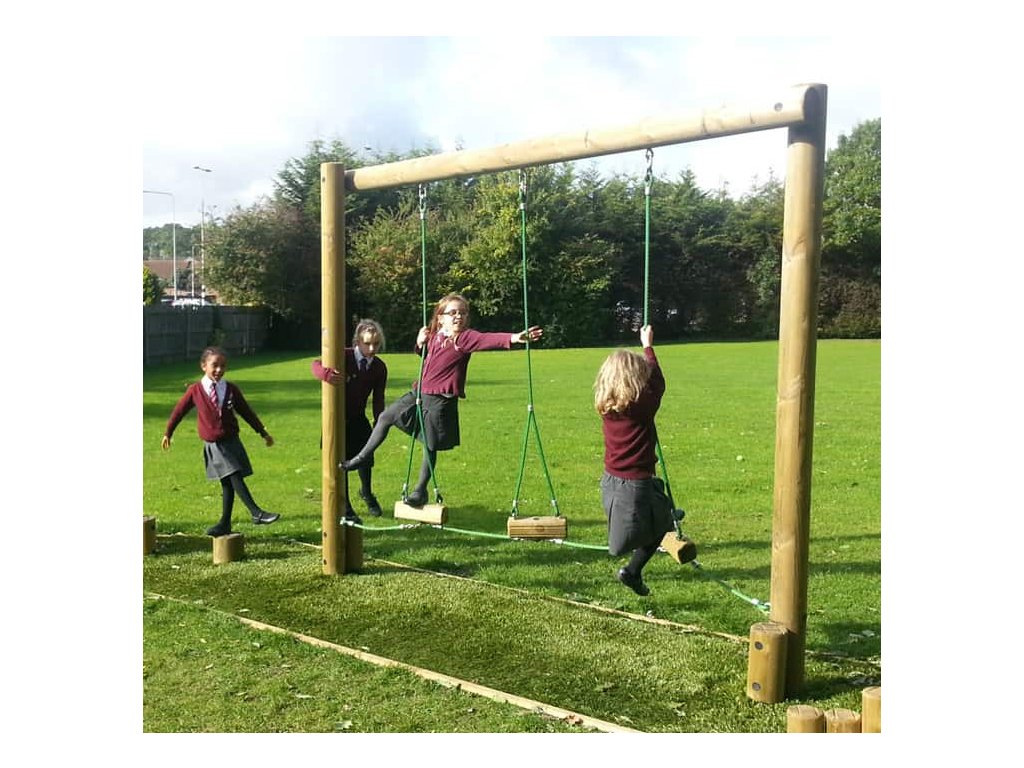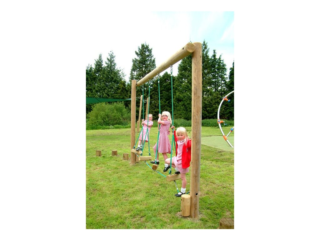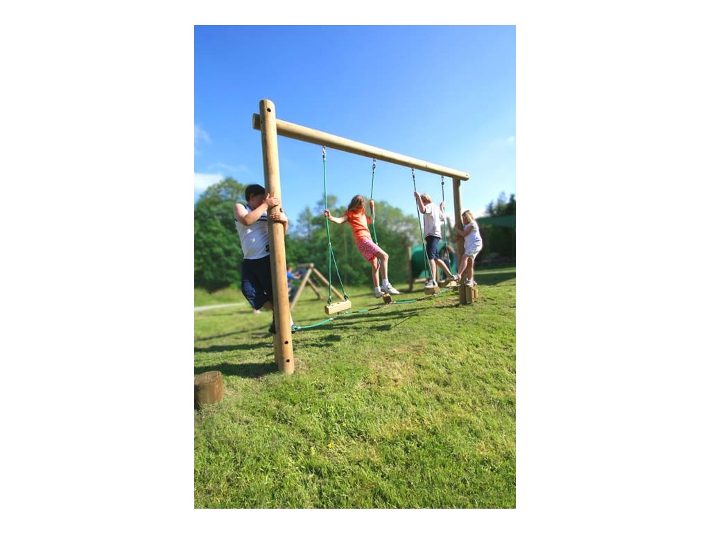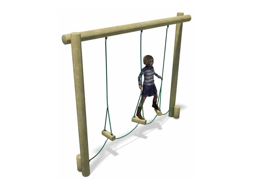 Jak trénovat rovnováhu a koordinaci pohybu? Skvělým doplňkem dětských hřišť do parků, k restauracím, hotelům a na různá veřejná prostranství je houpavá cik cak lanová aktivita od firmy Playdale. Sestava ze tří dřevěných kůlů ze smrkové středové kulatiny sestavených jako hrazda a ze tří nebo čtyř svislých lan zakončených nášlapnou plochou vytvoří pro děti zajímavou aktivitu. Mohou se mezi lany různě proplétat a soutěžit kdo se nejrychleji dostane z bodu A do bodu B a nedotkne se země. Z důvodu prodloužení trvanlivosti je dřevo impregnováno. Sestavu lze k podkladu připevnit několika způsoby - zapustit do půdy nebo připevnit pomocí pozinkovaných ocelových kotev, které jsou součástí dodávky.