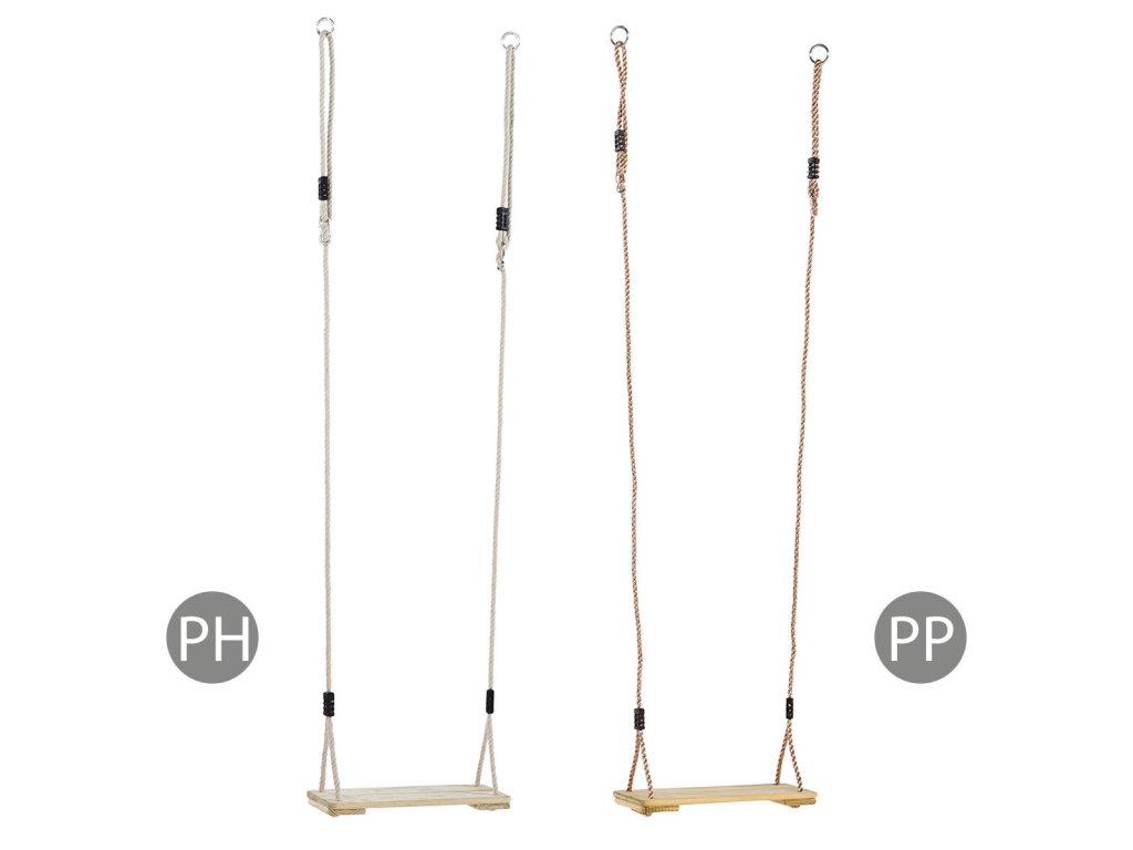 Houpačkaový sedák vyrobený z tvrdého dřeva o velikosti 403 x 155 mm. Sedák je dodáván s lany o průměru PH 10 mm která jsou připevněna hřebíky. Kroužky a osmičky k zavěšení houpačky jsou vyrobeny z pozinkované oceli a sváry na lanech jsou z černého PP.