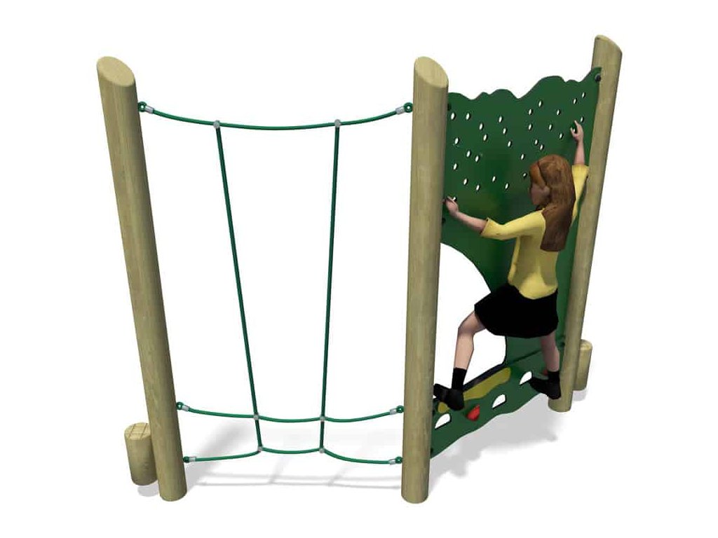 Sestava je vyrobena ze dvou dílů. Dva svislé kůly ze smrkové středové kulatiny jsou spojeny barevnými panely z 12 mm silného kompaktního laminátu a mezi dvěma kůly je pro přechod zavěšené lano. Spodní panely mají výřezy pro nohy nebo jsou na nich připevněny nášlapné kameny. Horní panely mají výřezy pro prsty. Z důvodu prodloužení trvanlivosti je dřevo impregnováno a laminát voděodolný, omyvatelný a stálobarevný. Sestavu lze k podkladu připevnit několika způsoby - pomocí pozinkovaných ocelových kotev, které jsou součástí dodávky nebo ji pouze zapustit do půdy.