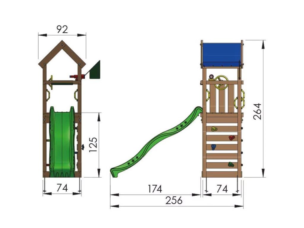- věže i domečky lze rozšířit o plastové skluzavky nebo houpačky