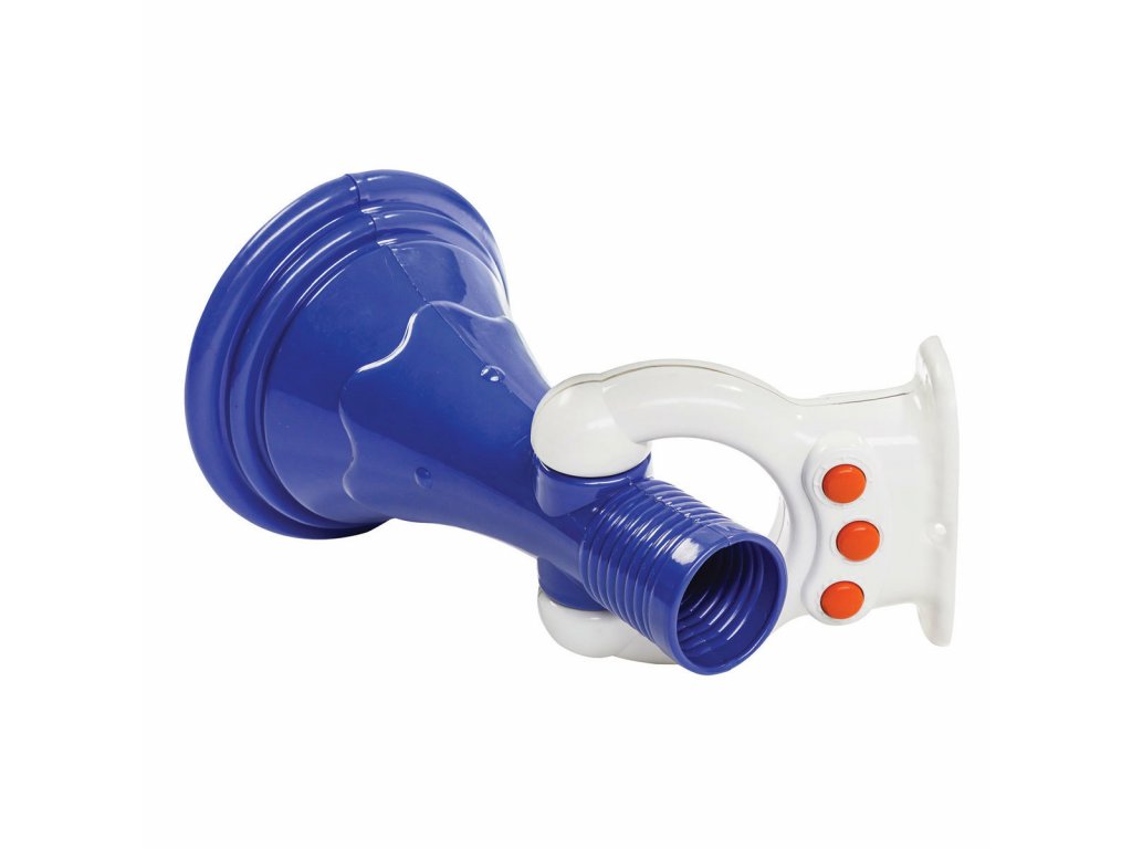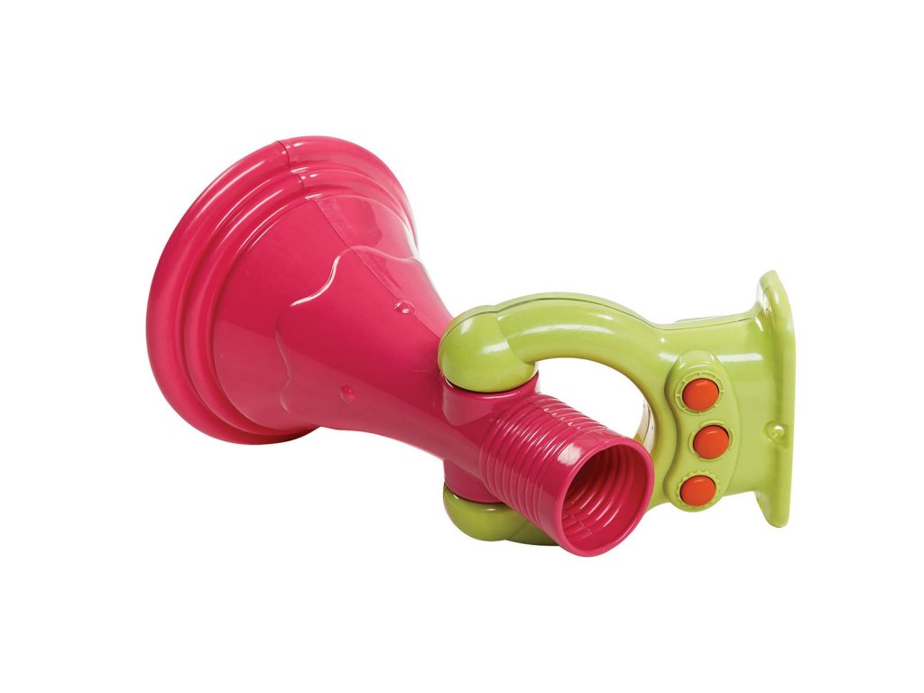 Plastový megafon s přednastavenými zvuky obohatí každé dětské hřiště. Po stisknutí oranžových tlačítek vydává 3 různé zvuky (vlak, siréna, slon). Ke zprovoznění hračky jsou potřeba 2 baterie AA, které nejsou součástí balení a je třeba je přiobjednat. Houkačka také zesiluje hlas při mluvení do megafonu. Zesílení není provedeno elektronicky, ale kvůli kuželovitému tvaru megafonu. Megafon je certifikovanou hračkou ČSN EN 71.