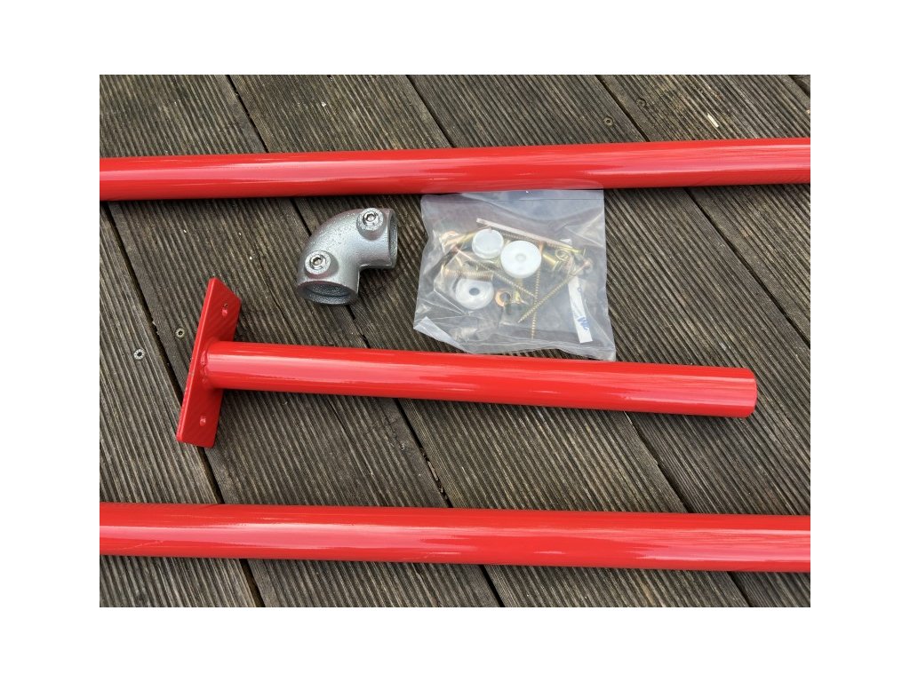 Šplhací tyč se skládá ze tří samostatných dílů a rohové spojky, vzdálenost ke kotvenému prvku je 39,5 cm.