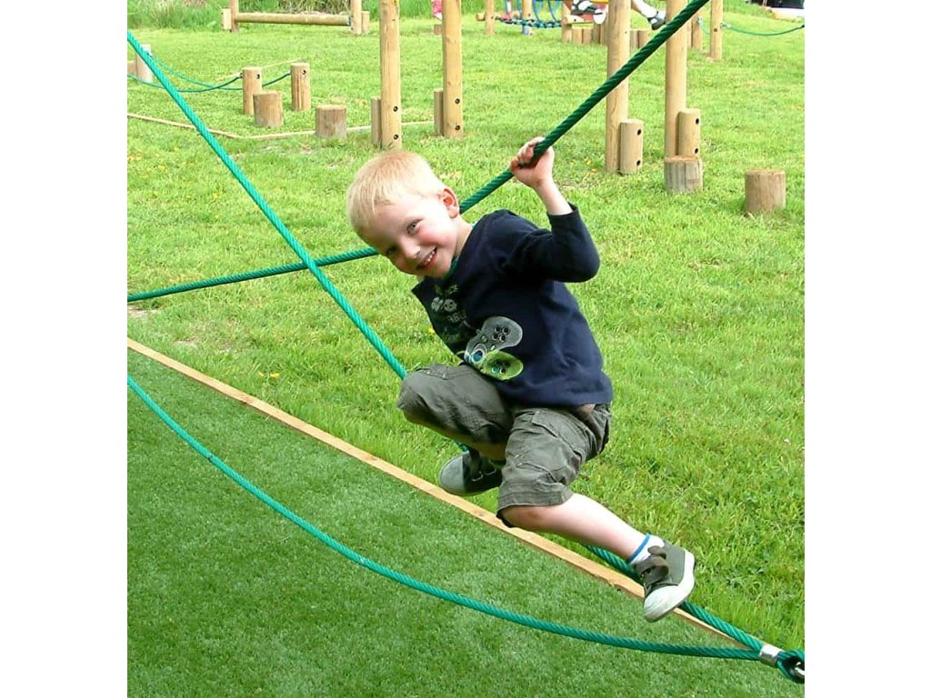 Sestava z dřevěných kůlů ze smrkové středové kulatiny a různě dlouhých lan vytvoří pro děti zajímavou aktivitu. Mohou se mezi lany různě proplétat a soutěžit kdo vydrží déle nedotknout se země. Z důvodu prodloužení trvanlivosti je dřevo impregnováno. Sestavu lze k podkladu připevnit několika způsoby - zapustit do půdy nebo připevnit pomocí pozinkovaných ocelových kotev, které jsou součástí dodávky.