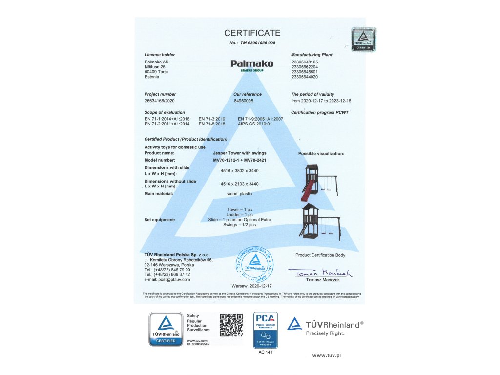 Herní sestava splňuje Evropské standardy EN 71-1, EN 71-8 a Směrnici Evropského parlamentu a Rady 2009/48/ES o bezpečnosti hraček.