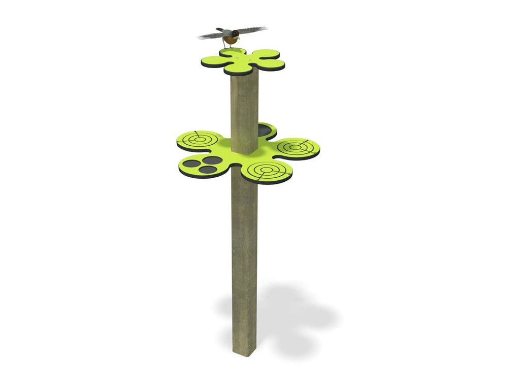 Pro ptáčky kteří si podlouhém letu potřebují odpočinout a něco sezobnout je z kopaktního laminátu připraveno stojací ptačí sedátko a krmítko v jednom od firmy Playdale jako doplněk každé dětské zahrádky. Děti se učí jak se starat o ptáčky třeba jen tím, že jim budou pravidelně sypat v zimě do krmítka. Krmítko i odpočívátko z laminátu je připevněno na opracovaný dřevěný hranol.
