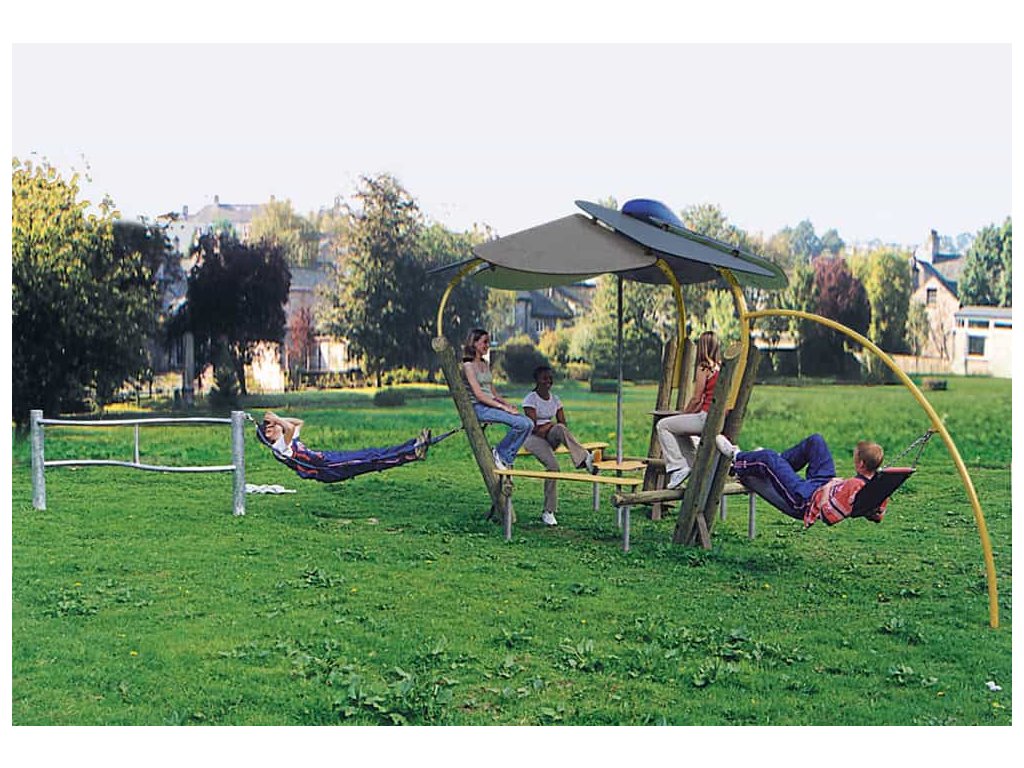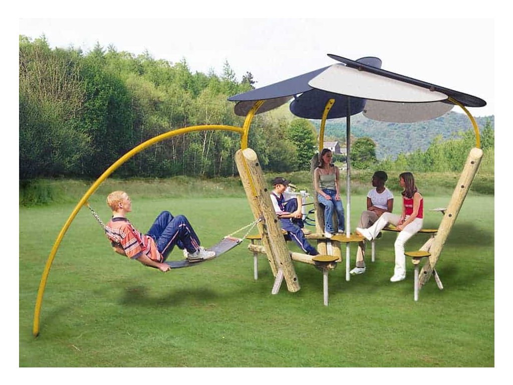 Sedací sestava je určena pro dospívající děti od 11 do 17 let v různých velikostech co do počtu odpočívajících, co do vybavení (stříška, lanová houpačka, stoleček) nebo co do kombinace použitého materiálu při výrobě (ocel, dřevo, plast). Tyto sedací sestavy jsou vhodné na školní zahrady, k univerzitám ale i do parků.