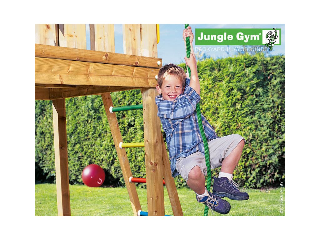 Šplhací lano Climbing Rope patří mezi nejoblíbenější doplňky k dětským hřištím Jungle Gym. Je vhodné pro děti od 2 do 10 let a do váhy 50 kg. Lano má délku 3,5 metru a průměr 3 centimetry, je vyrobeno z pevného materiálu, který je zárukou bezpečného šplhání. Má plastové zakončení proti třepení.