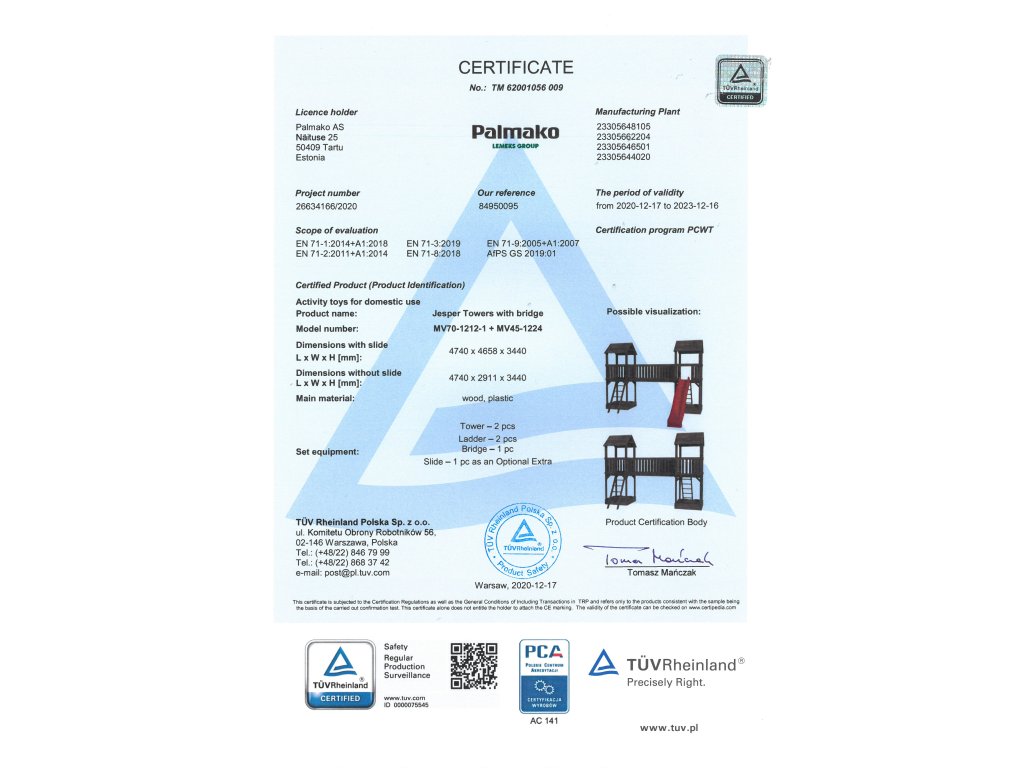 Herní sestava splňuje Evropské standardy EN 71-1, EN 71-8 a Směrnici Evropského parlamentu a Rady 2009/48/ES o bezpečnosti hraček.