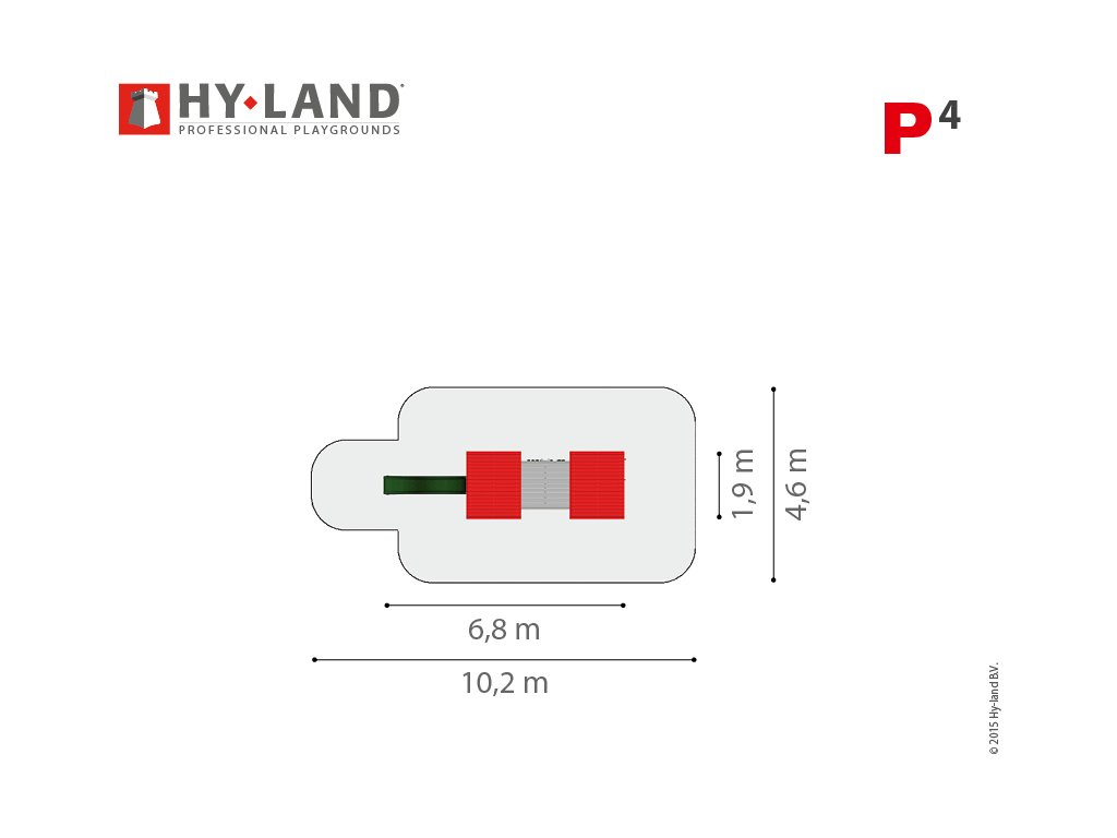 Hřiště je určeno pro děti od 3 do 12 let. Na děti je nutný dohled dospělé osoby a v jeden daný okamžik si může z důvodu bezpečnosti hrát maximálně 6 dětí najednou. Prostor pod prolézačkou lze vyplnit pískovištěm pro ty nejmenší. Výška volného pádu z tohoto dětského hřiště je 1,5 m a proto Hy-land P4 musí mít speciální dopadové plochy tlumící pád např. 30cm silná vrstva písku, kačírku, drcené kůry nebo dopadových dlaždic. Dopadová plocha není zahrnuta do ceny hřiště, cenová kalkulace Vám bude dodána na vyžádání.