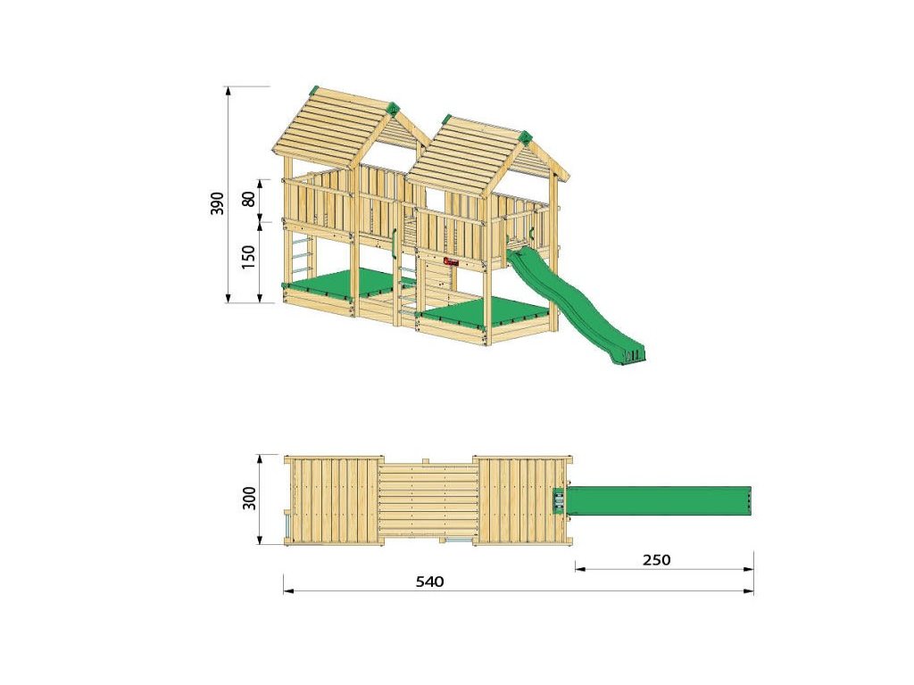 V ceně sestavy je certifikovaná, plastová skluzavka o délce 3m (jen v zelené barvě).