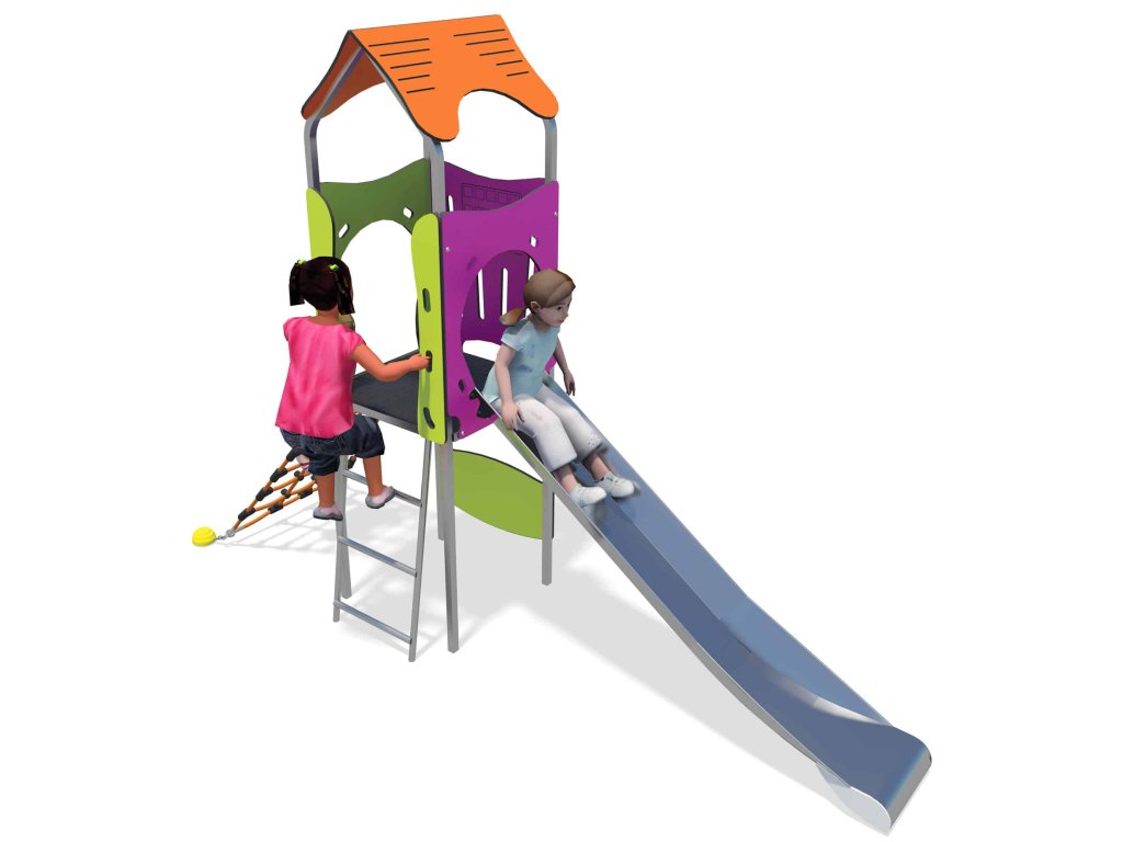 Dětská věž z nerezové oceli do jeslí a školek, ale i ke komerčním objektům pro nejmenší děti, které si mohou vyzkoušet svoji pohybovou a motorickou dovednost. Herní prvek je určen pro děti od 18 měsíců do 5 let.