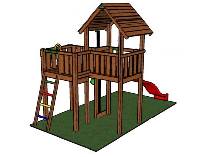 Sestava je doplněna o laminátovou skluzavku v několika barevných variantách. Na podestu věže dítě vyleze po barevném žebříčku