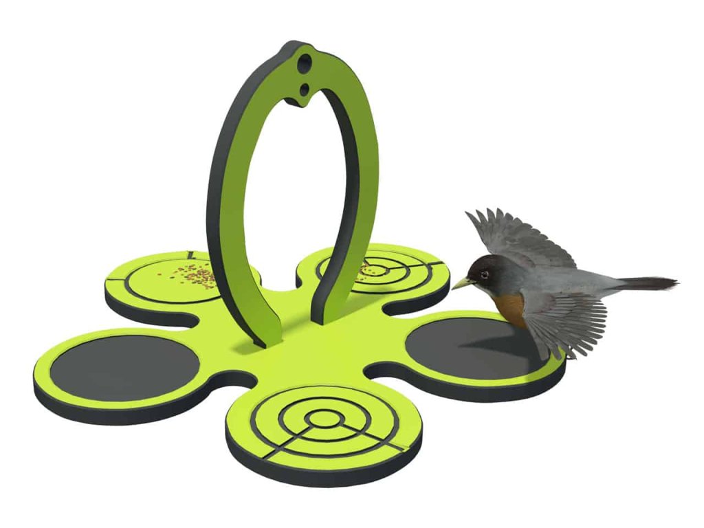 Děti se učí jak se starat o ptáčky třeba jen tím, že jim budou pravidelně sypat v zimě do krmítka. Krmítko i odpočívátko z kompaktního laminátu je zavěšeno na strom.