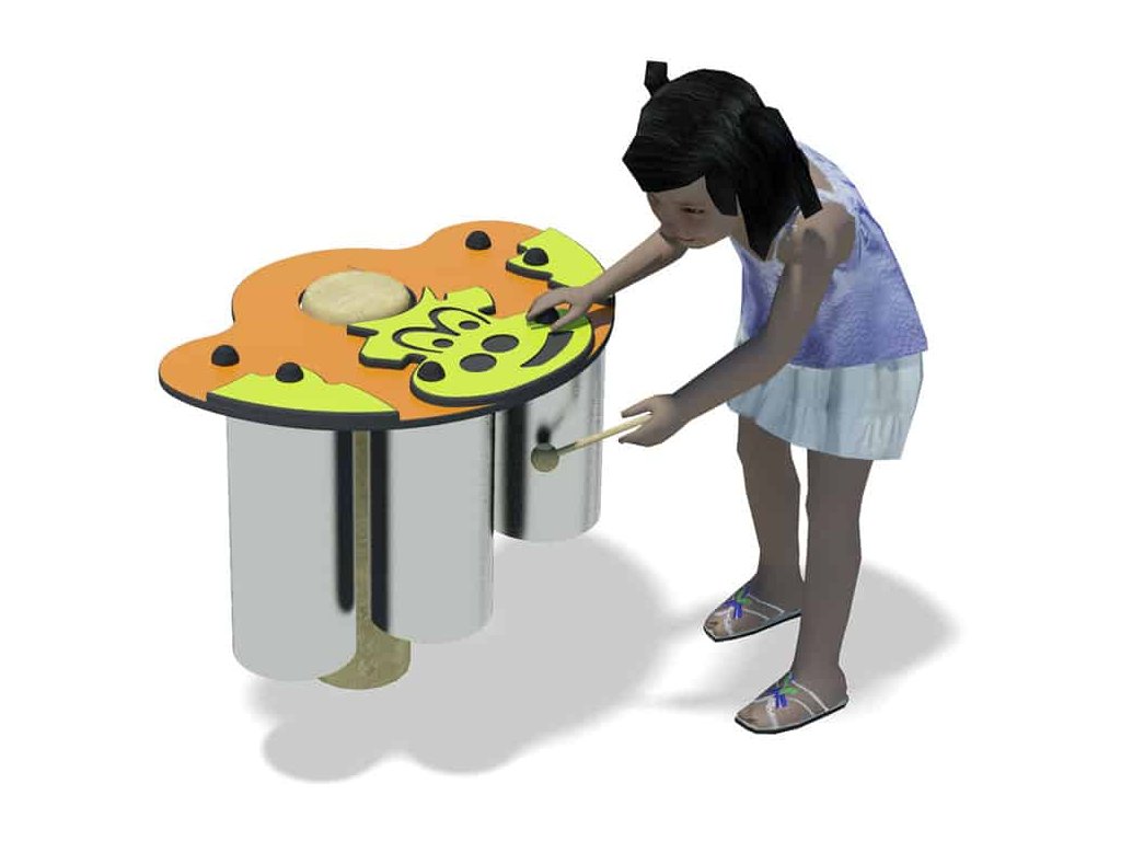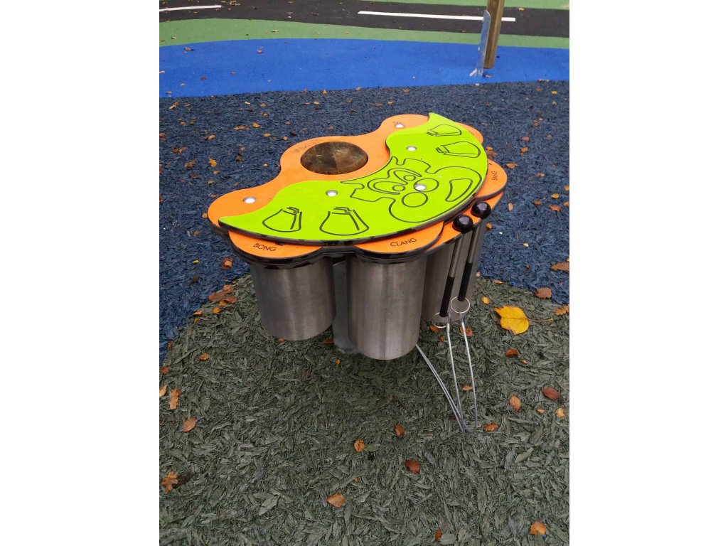 Opravdový zážitek budou mít vaše ratolesti na dětském hřišti s Cow Bells (kravské zvony) od firmy Playdale. Pomocí dvou paliček zazní po celém hřišti výrazné zvonky. Zvonkohra je vyrobena z několika částí. Na sloupku ze středové kulatiny je připevněn pultík z kopaktního laminátu s hlavou krávy. Na pultíku jsou zavěšeny různě dlouhé kovové zvonce na které se hraje pomocí dřevěných nebo plasových paliček. Pro prodloužení trvanlivosti je dřevo naimpregnováno a laminát je stálobarevný a voděodolný. Hrací sestavu je třeba k podkladu připevnit mocí pozinkovaných ocelových kotev, které jsou součástí dodávky. Panel je určen pro děti od 3 do 11let.